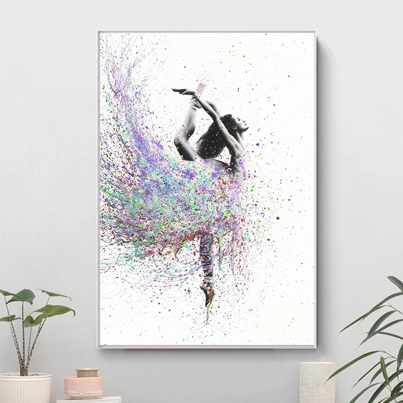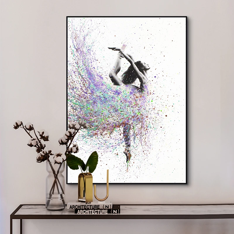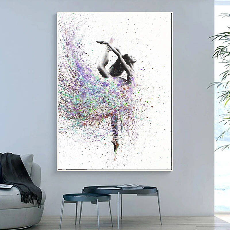 Красочная абстрактная картина танцующая девушка, холст, плакаты и печать балерины, картина на стену для гостиной, Декор