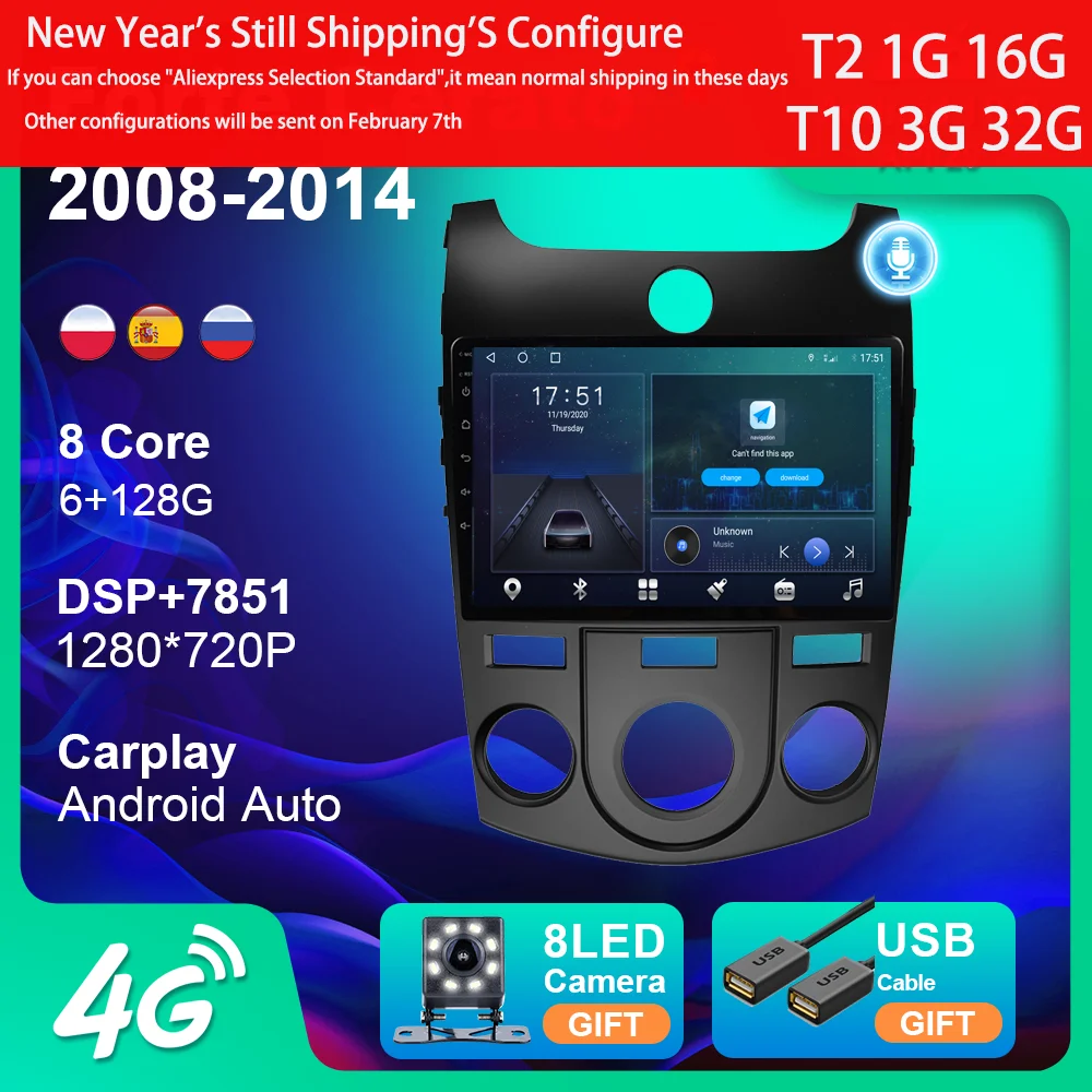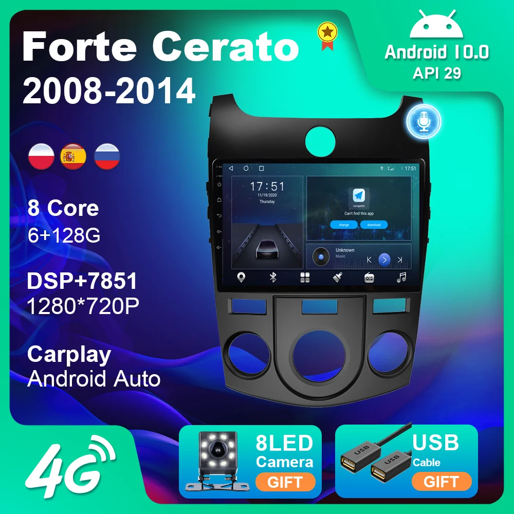 Автомобильный мультимедийный стерео проигрыватель 2 Din на Android 10 для KIA Forte Cerato 2008-2014, 4G BT, GPS-навигация, радио, без DVD, запасная часть