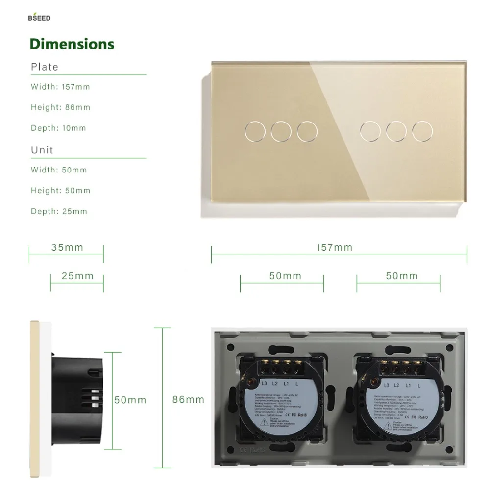 Умный сенсорный выключатель Bseed с Wi-Fi, двойной, 3 клавиши, настенный переключатель, панель класса кристаллов, модная деталь сделай сам, 3 цвета