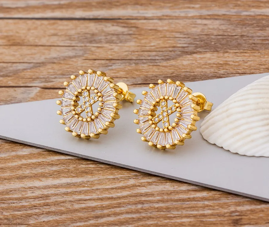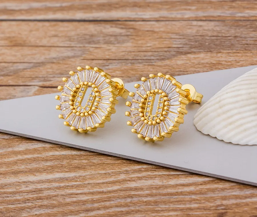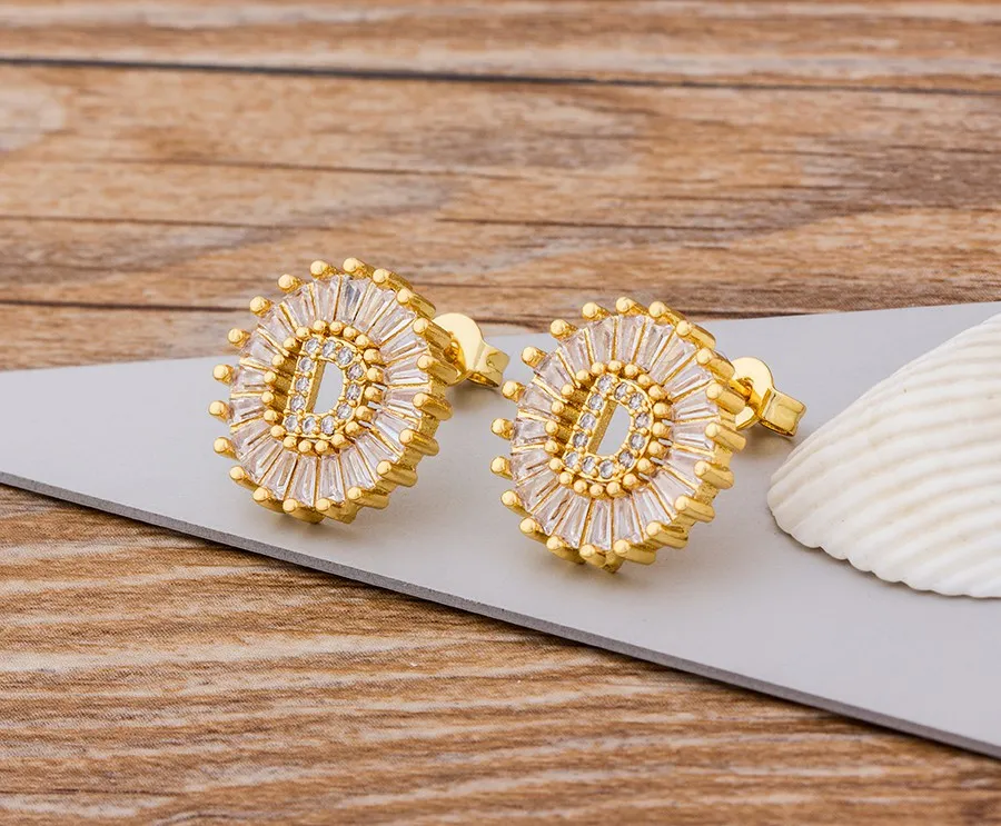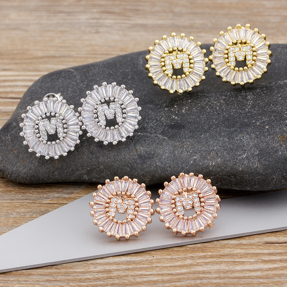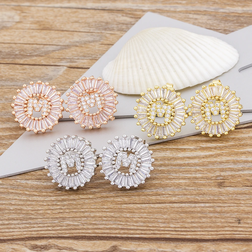 Золотыерозовые Золотыесеребряные серьги с 26 инициалами алфавита, серьги с буквой, массивный подарок, фианиты с именем семьи, серьги для женщин, ювелирные изделия