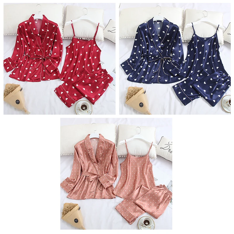 Пижама JULY'S SONG Женская, из искусственного шелка, атласа, с поясом, 3 шт.