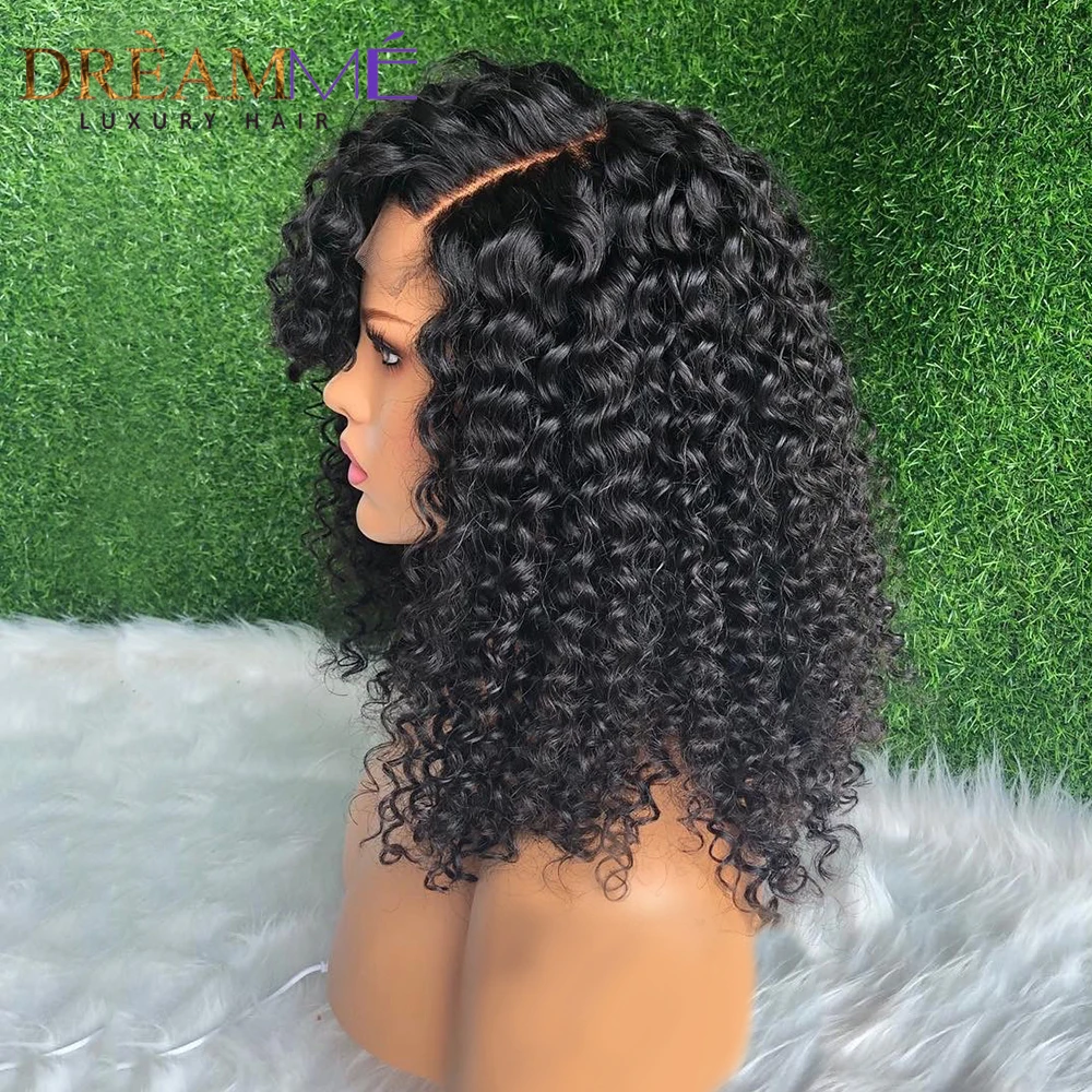 Короткие вьющиеся парики из человеческих волос 4X4 на сетке для женщин, парик с глубокой волной на черной стороне, парик с 150% плотностью, предварительно выщипанный парик без повреждений