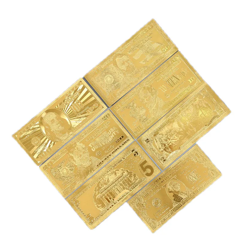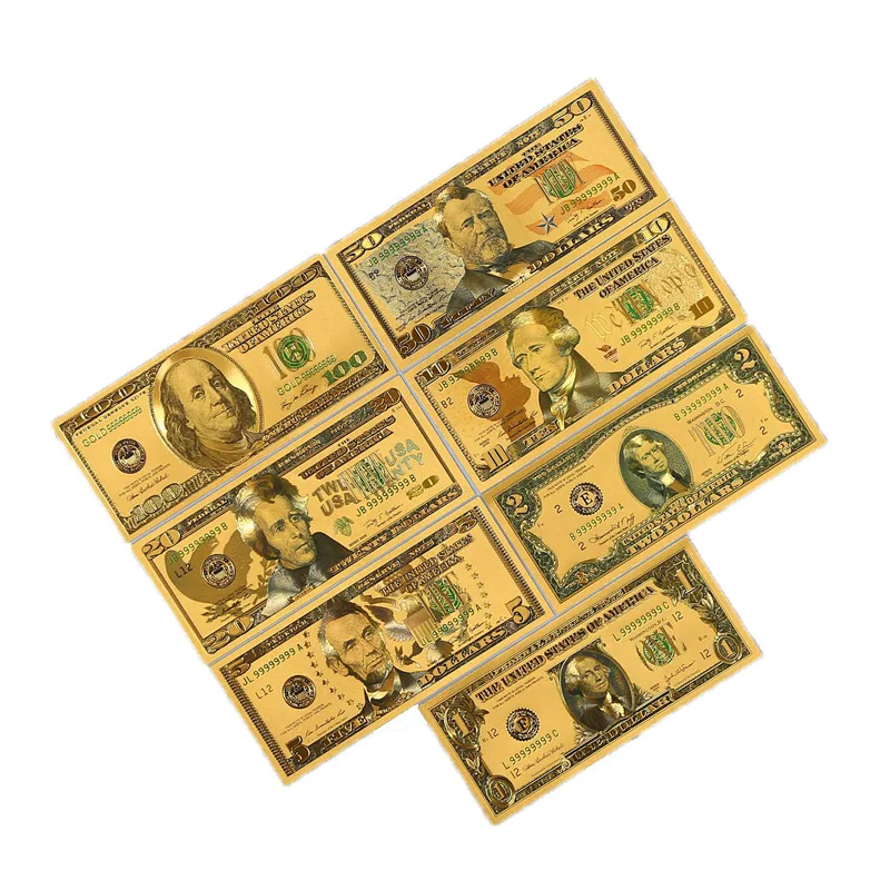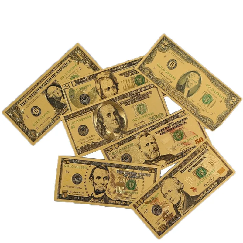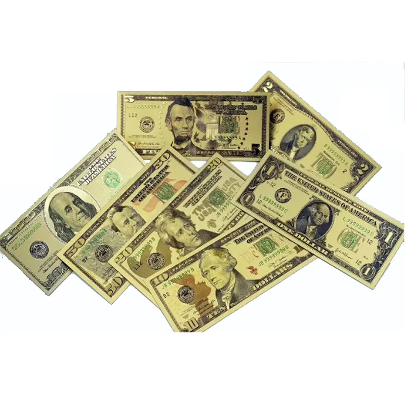 Банкнота из золотой фольги США, 7 шт.лот, поддельные американские банкноты, все доллары, коллекция бумажных денег для украшения дома, подарок