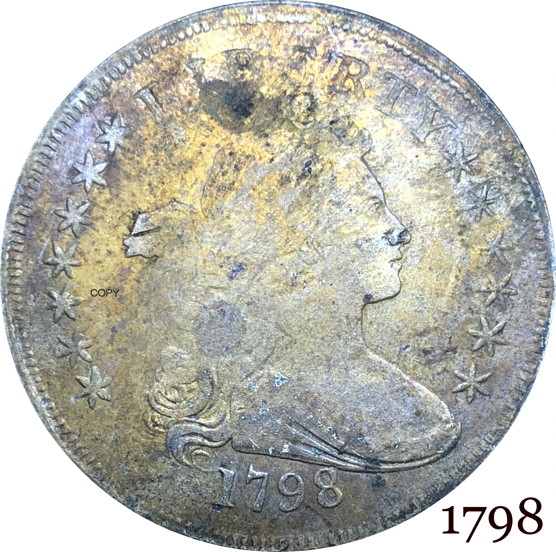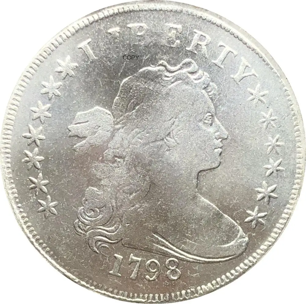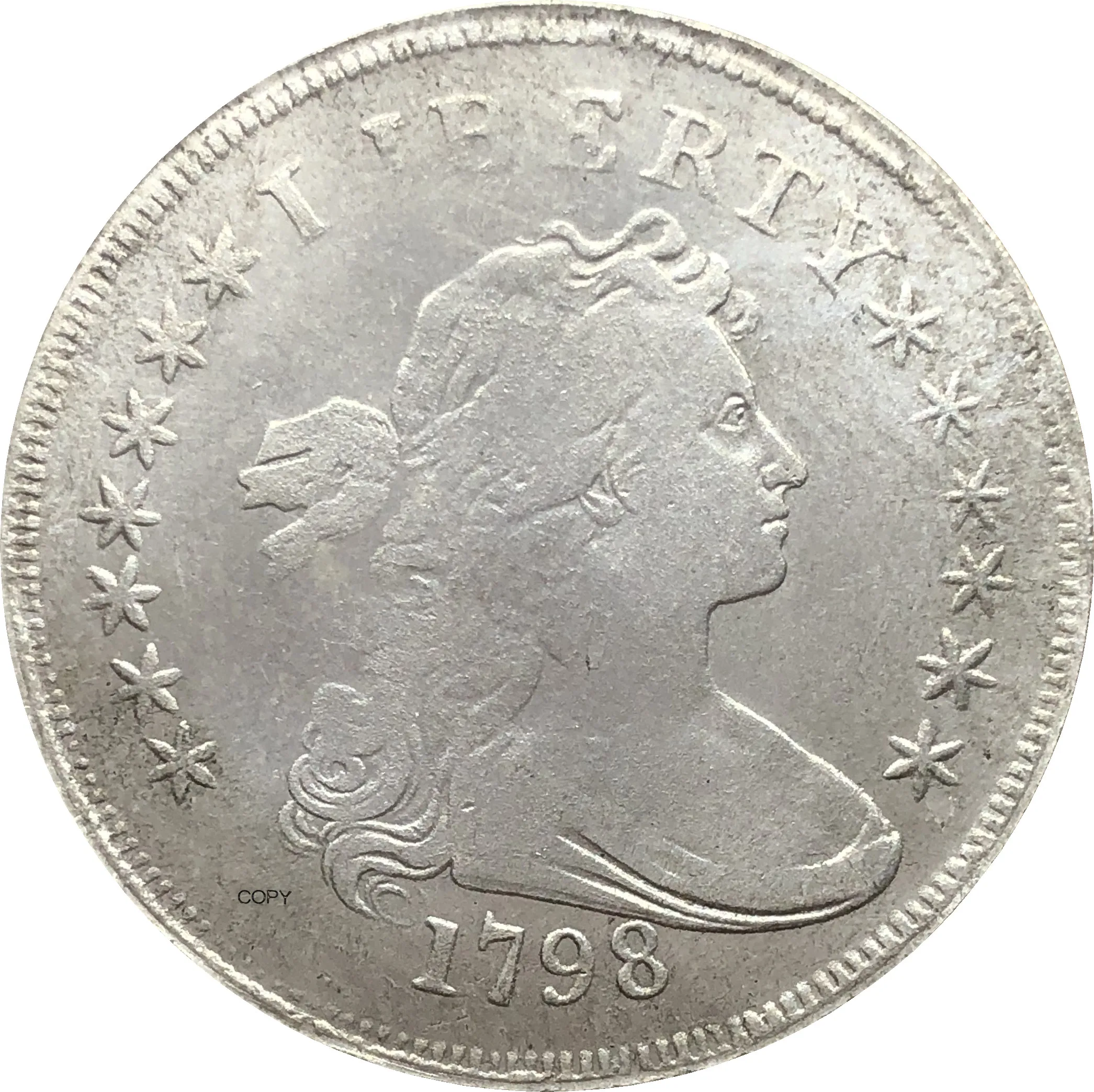 Соединенные Штаты 1798 драпированный бюст свобода один доллар геральный Орел купроникель посеребренные копировальные монеты