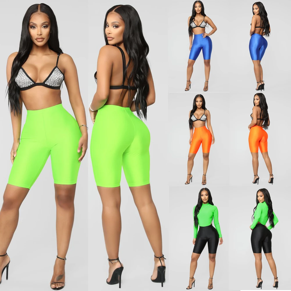 Модные женские леггинсы, байкерские шорты, обтягивающие однотонные шорты для фитнеса, тренировок, бега