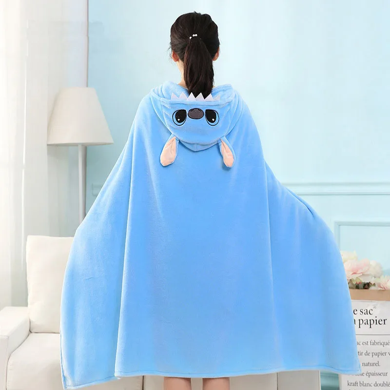 Одеяло из кораллового флиса с капюшоном, милый мультяшный плащ для ...