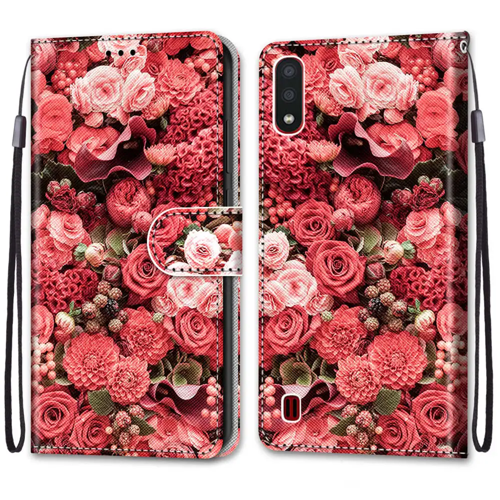 Кожаный чехол с рисунком для Samsung Galaxy A02 SM-A022FDS, чехол д...