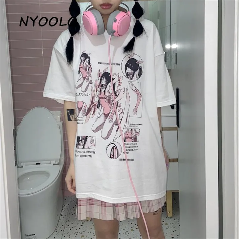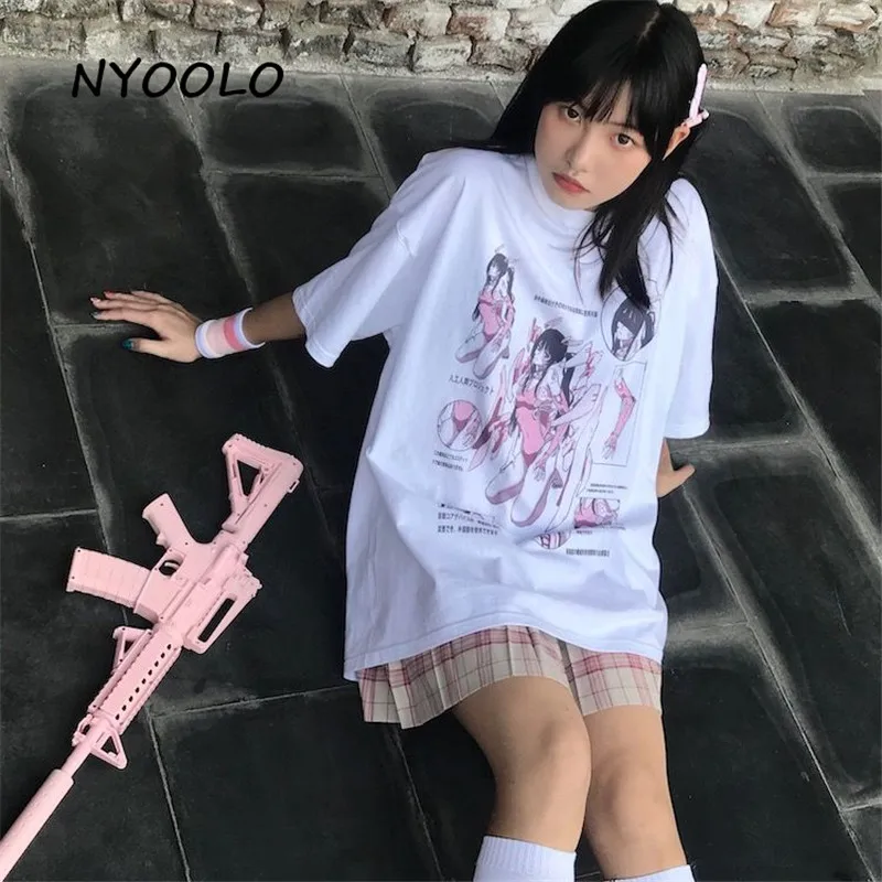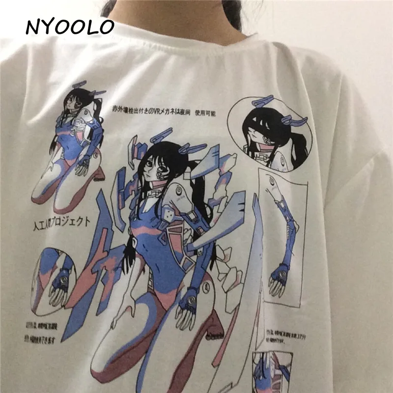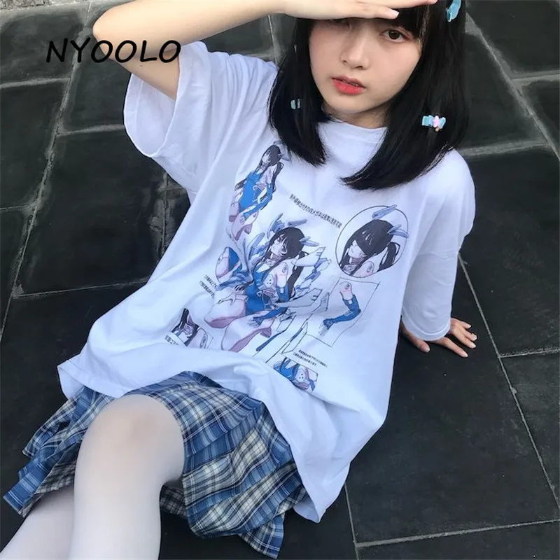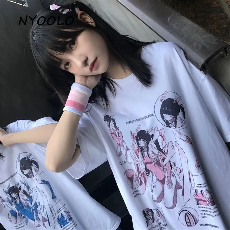 Женская футболка с коротким рукавом NYOOLO, летняя футболка с круглым вырезом и надписью Harajuku в стиле аниме