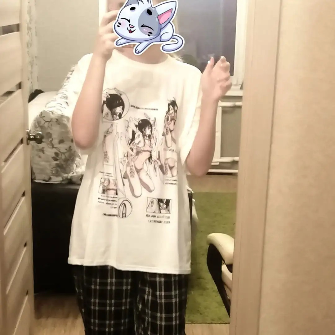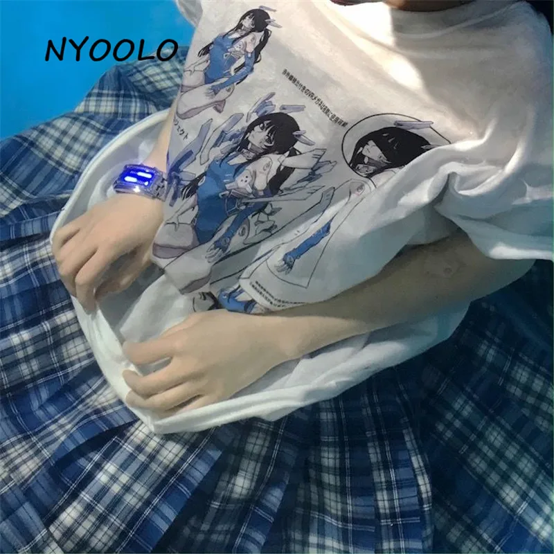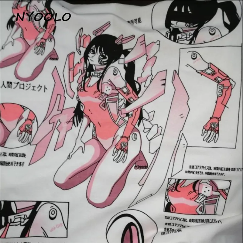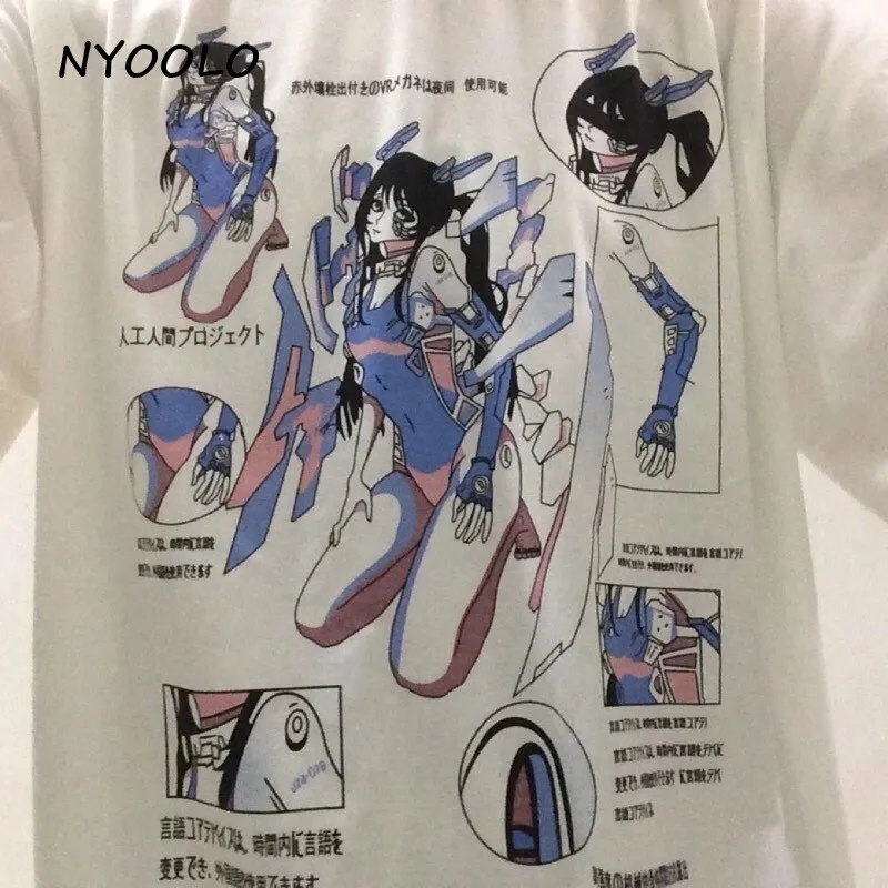 Женская футболка с коротким рукавом NYOOLO, летняя футболка с круглым вырезом и надписью Harajuku в стиле аниме
