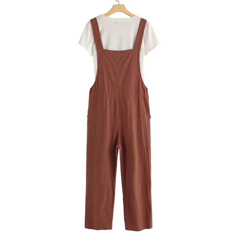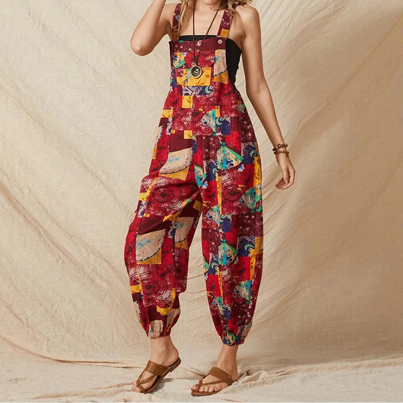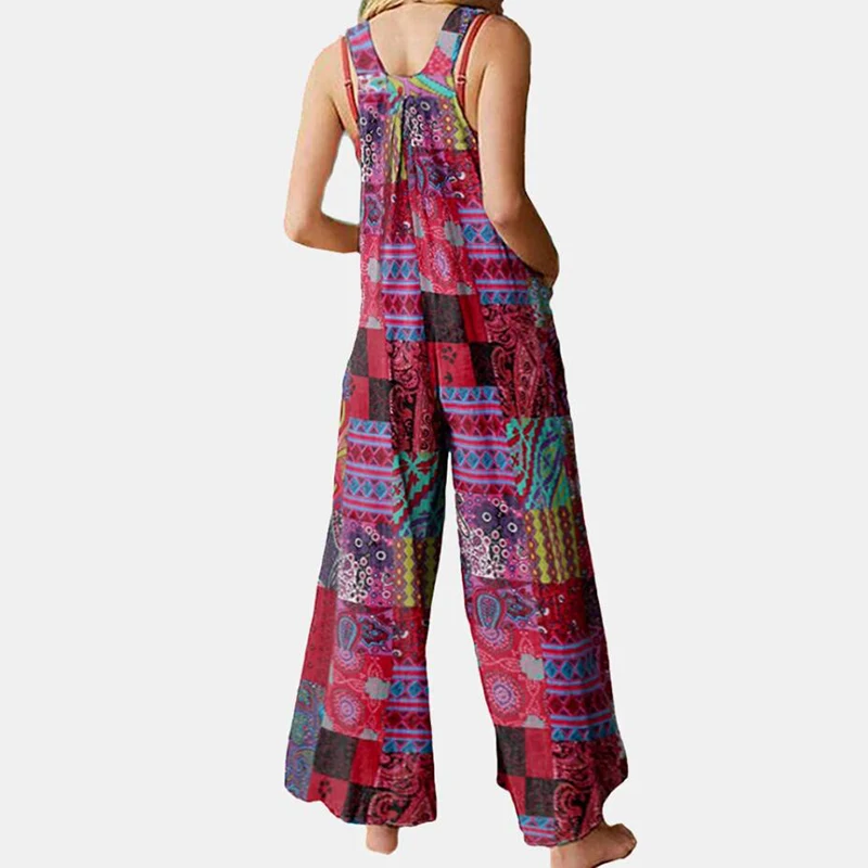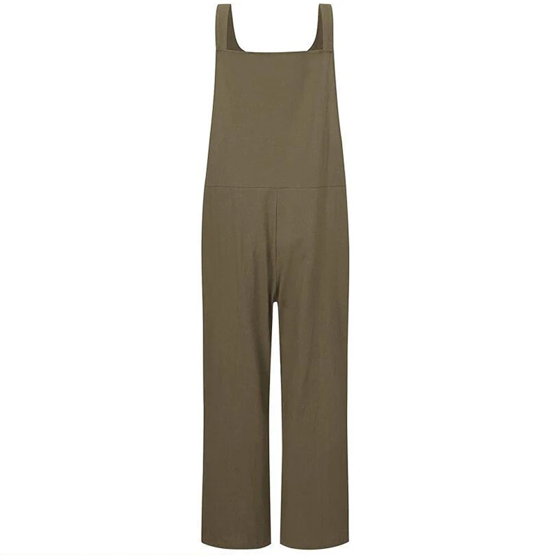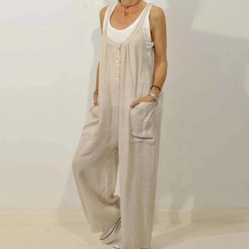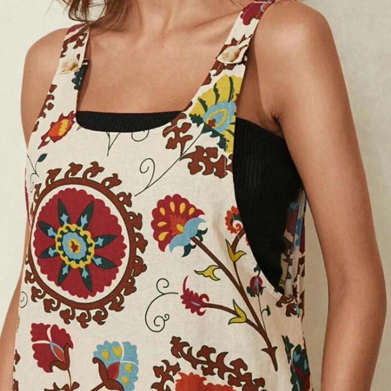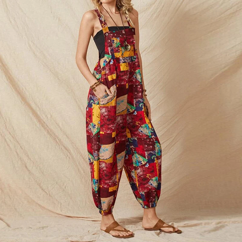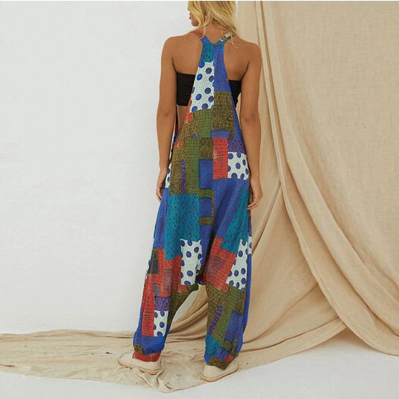 Женский свободный комбинезон из хлопка и льна, боди на пуговицах с цветочным принтом, элегантный комбинезон с открытой спиной, карманами и широкими штанинами, лето 2020