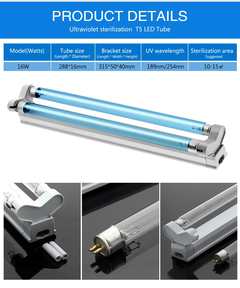 Ультрафиолетовая бактерицидная лампа T5, 220 В, трубка 16 Вт, УФС, озоновый двойной стерилизатор помещений, светодиодный кварцевый УФ светильник свет для дома и больницы