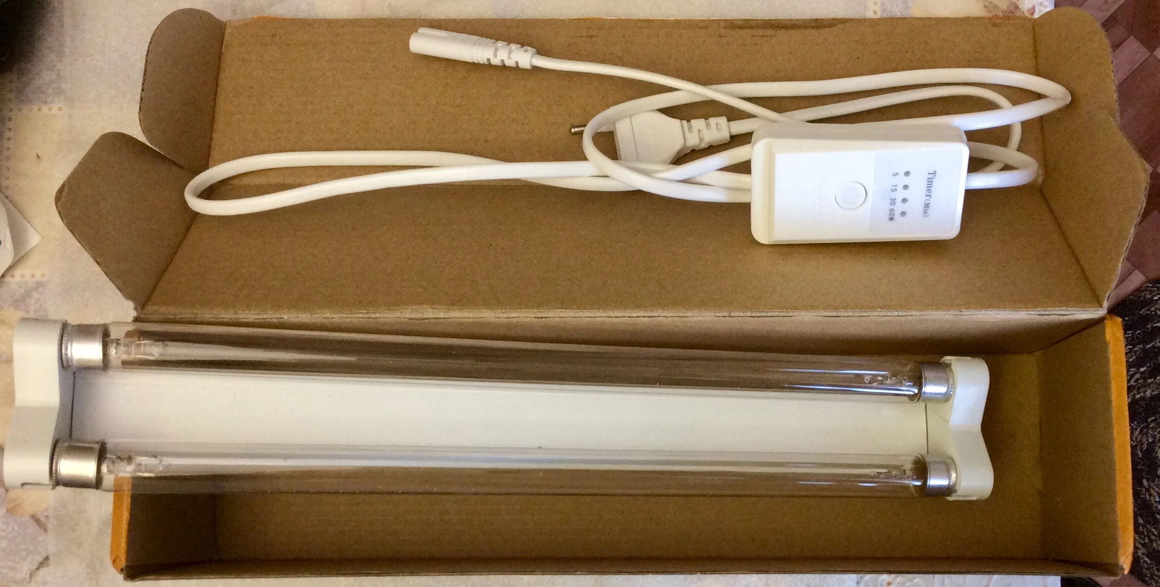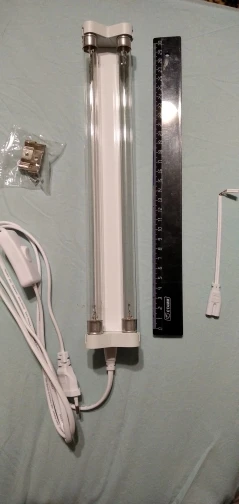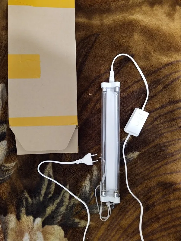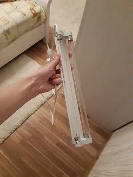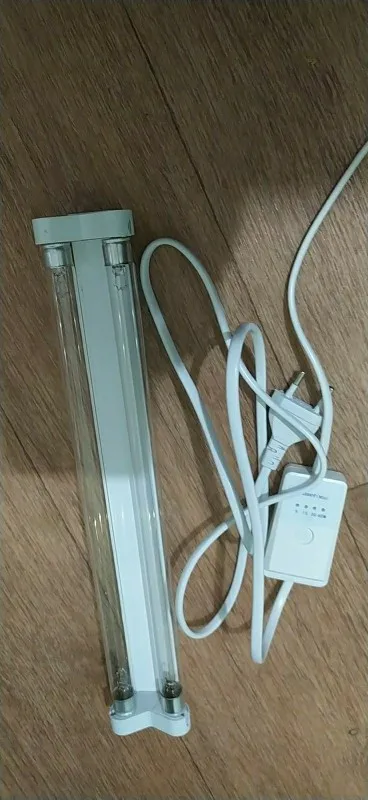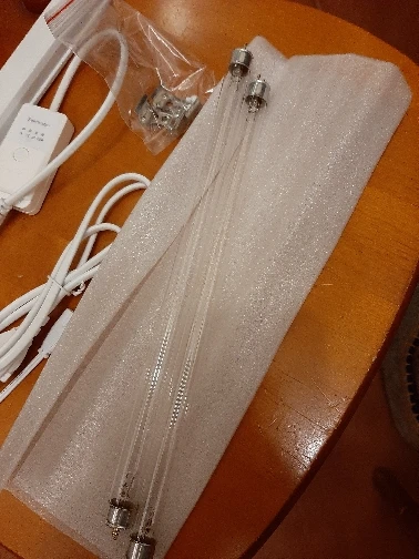 Товар получен быстро.2 лампы в одном светильнике. Хороший кабель питания с таймером. Есть запах озона. Всего пришло 4 лампы (2 устройства). 1 из 4х не работает, продавец предлагает открыть спор, замену не шлёт.