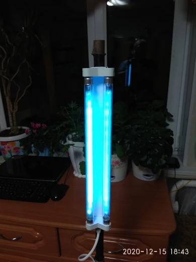 Лампа стационарная, пришлось сделать из неё переносную на ножке. Кварцует помещение нормально.