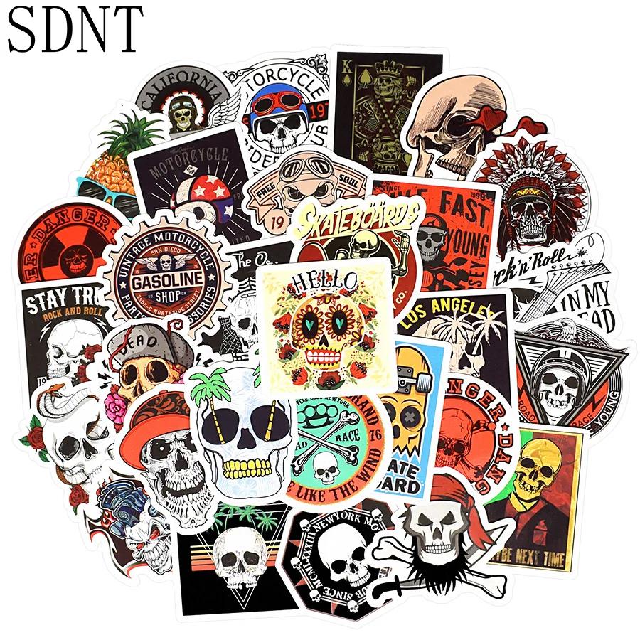 30 шт., водонепроницаемые ПВХ наклейки в виде черепа для скейтборда, ноутбука, велосипеда, гитары