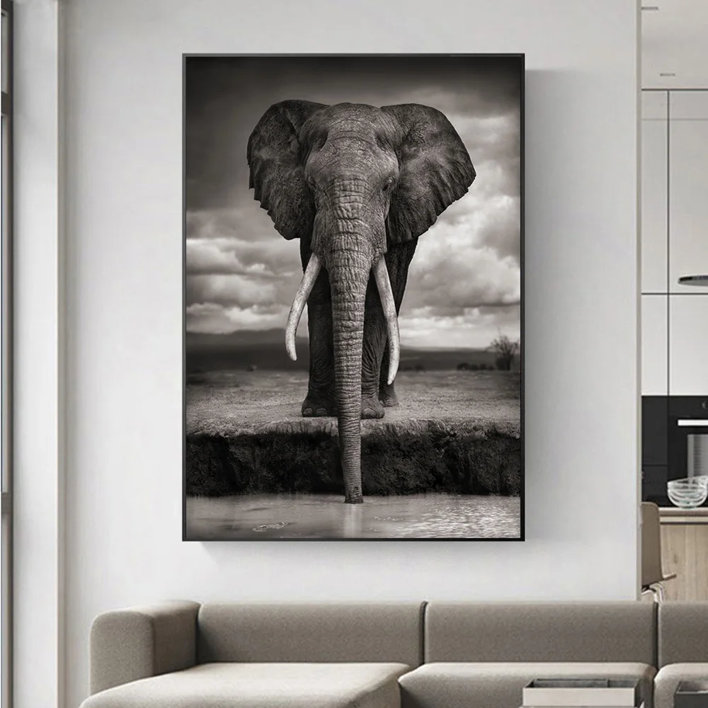 Креативные настенные картины в скандинавском стиле со слоном, печать на холсте, художественные принты с животными, черно-белые животные, настенные картины для гостиной