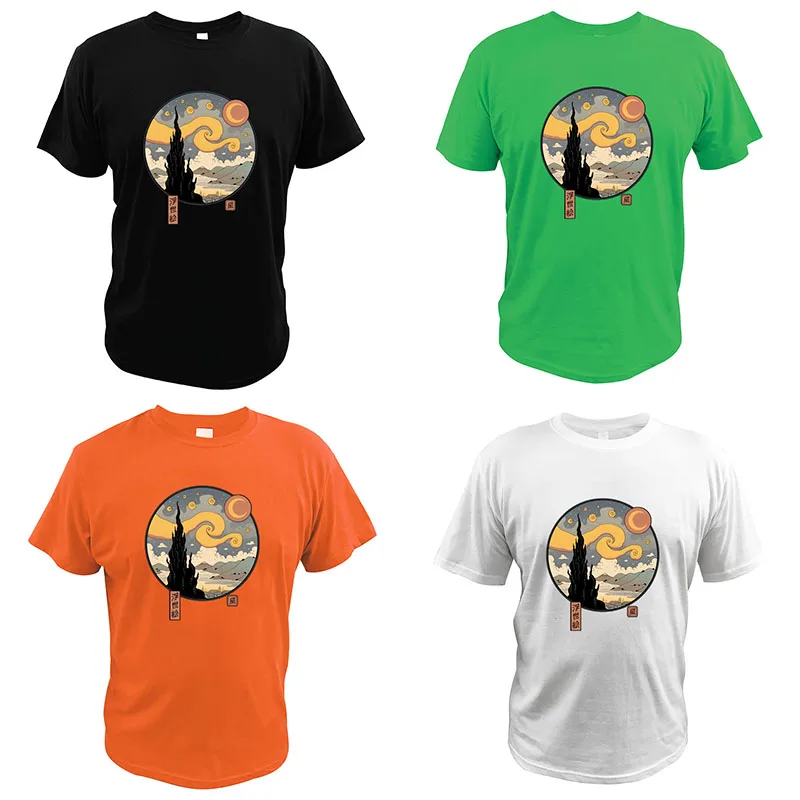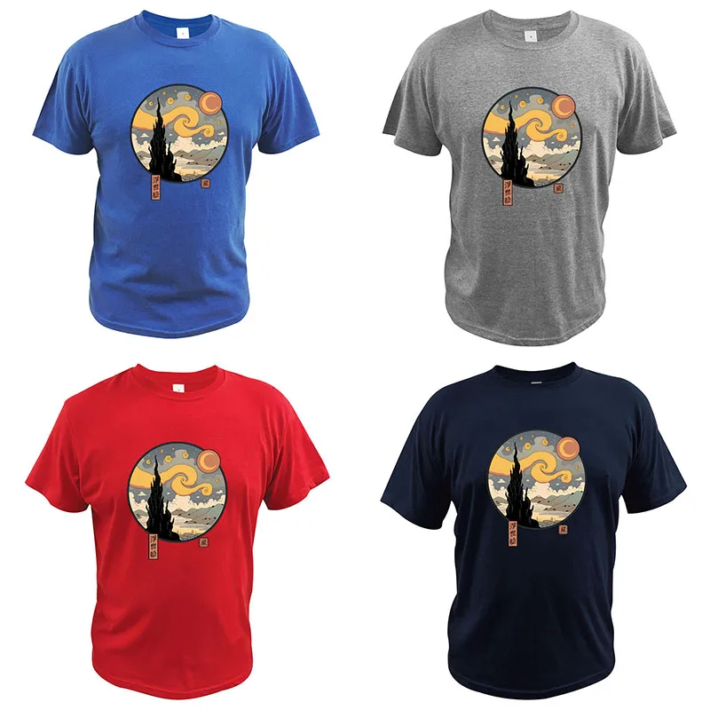 Футболка Starry Ukiyo-e Night, карикатура, Винсент Ван-Гог, японское искусство, культура, Creat, дизайн, высокое качество, европейский размер, футболка