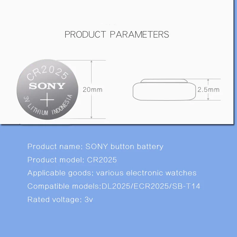 Батарейки SONY CR2025, 10 шт.лот, 3 в, литиевые, CR 2025, для часов, пультов дистанционного управления, игрушек, компьютера, калькулятора