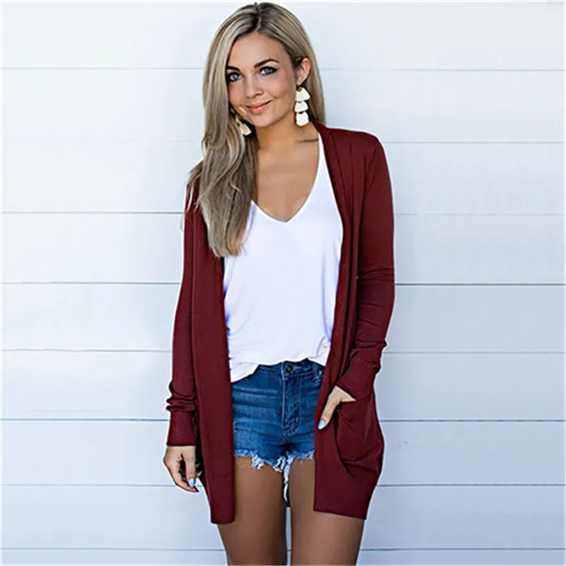Женский Повседневный Кардиган с карманами, свободный трикотажный свитер с длинными рукавами, осенняя верхняя одежда, теплая верхняя одежда