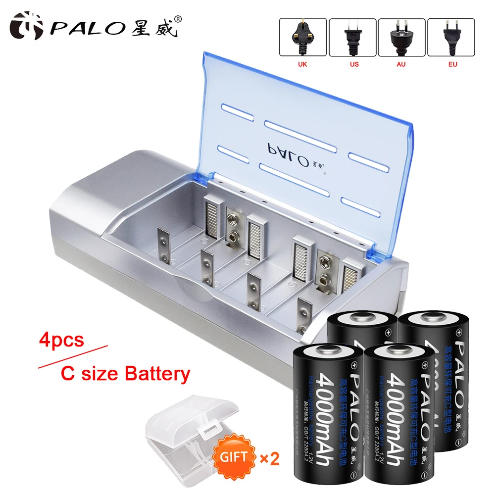 Palo 4 шт. C Размер аккумуляторная батарея типа C 1,2 В nimh 4000 мАч + светодиодный смарт-аккумулятор зарядное устройство для 1,2 В AA AAA C D батареи