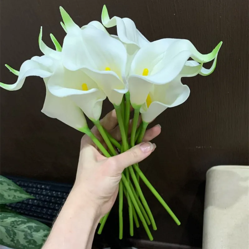 10 шт.лот Искусственные цветы из ПУ на ощупь, Калла, лилия, букет и...