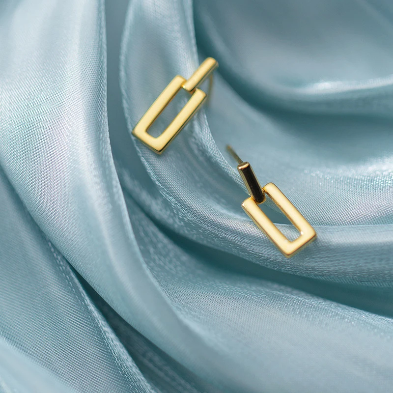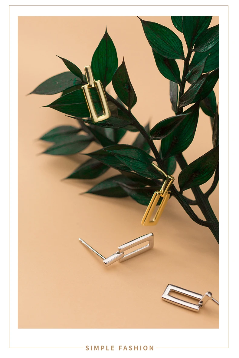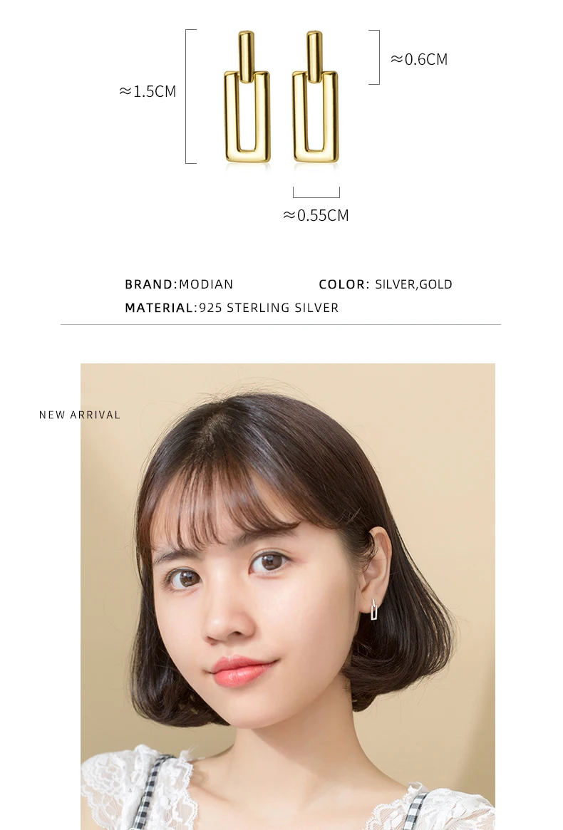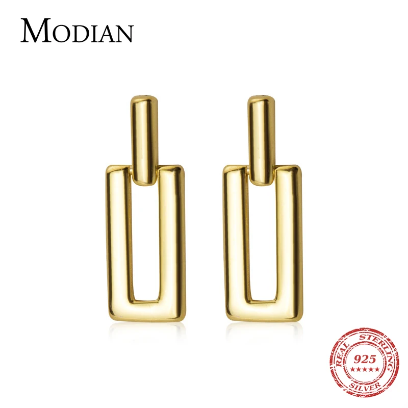 Женские прямоугольные серьги Modian, подлинные геометрические висячие серьги из стерлингового серебра 925 пробы золотого цвета, бижутерия
