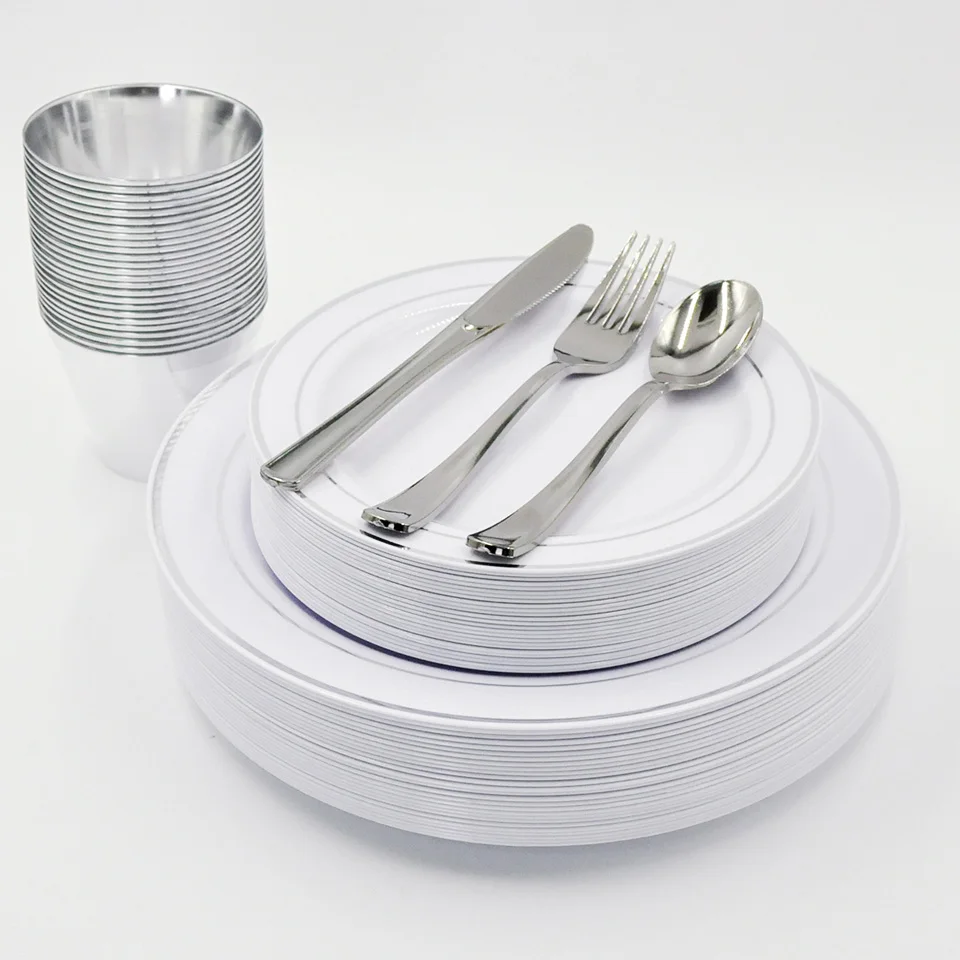 Набор пластиковых тарелок, вилок, ножей, ложек, Nicro, 150 шт.компл.