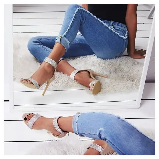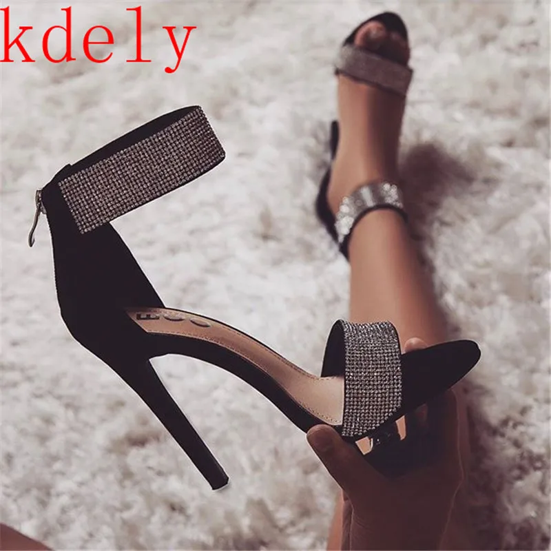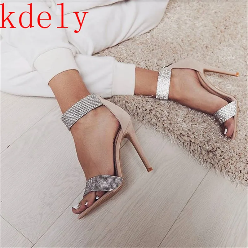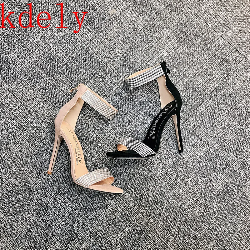 Женские босоножки на высоком каблуке, сандалии абрикосового и черного цвета со стразами, Клубные Босоножки на каблуке, Размеры 35-43, для лета, 2020