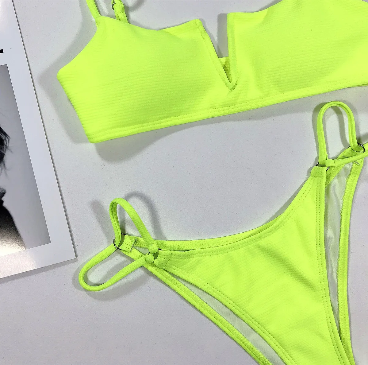Сексуальный неоново-зеленый комплект бикини, Женский однотонный куп...