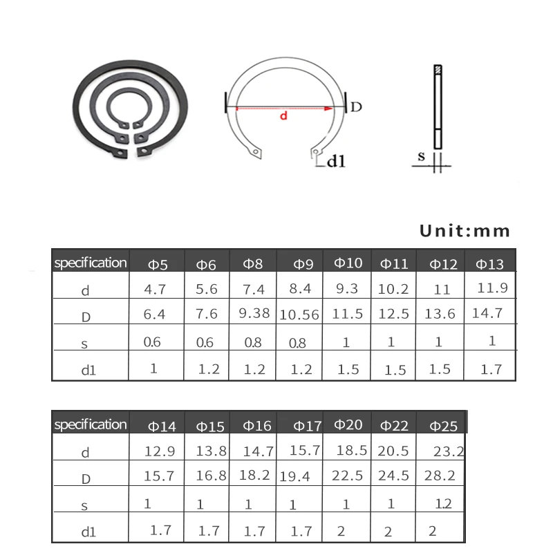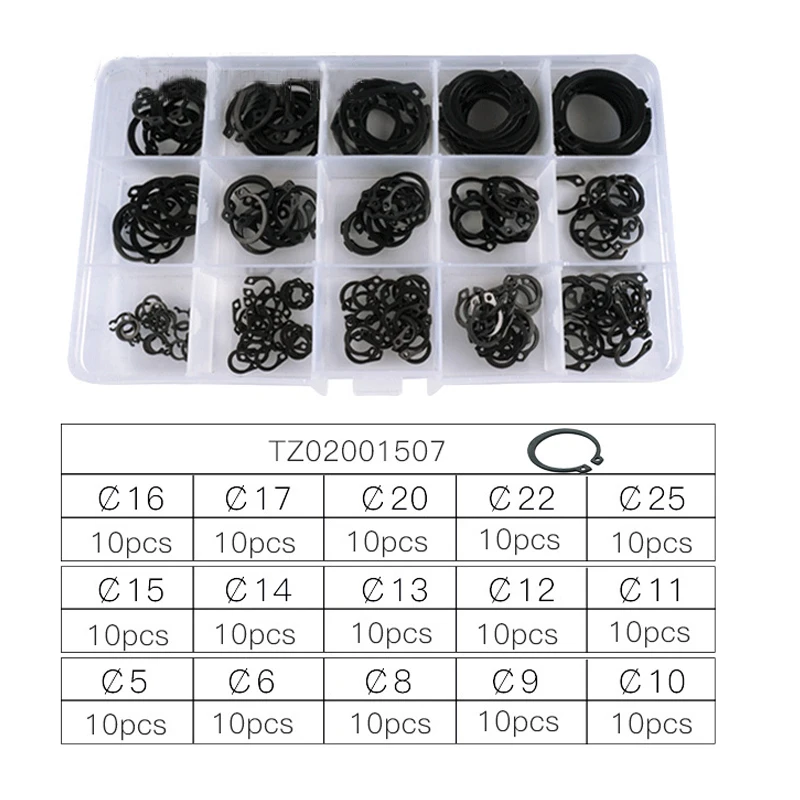 Стопорные кольца SNEYU, 150 шт., M5-M25, внутренние, внешние стопорные кольца, C-образные зажимы, стопорное кольцо, углеродистая сталь, ассортимент
