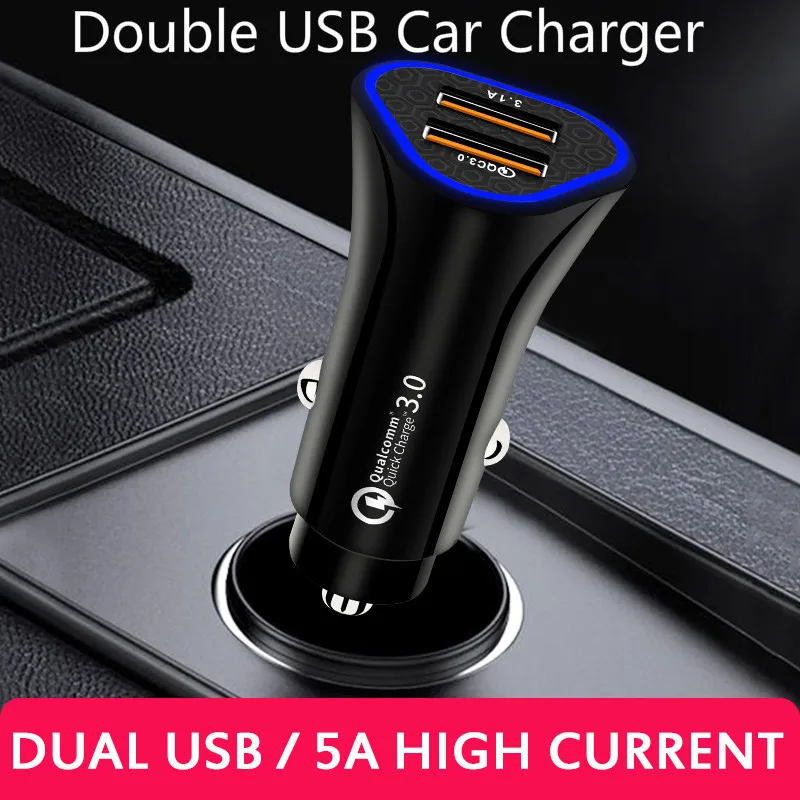 Универсальное автомобильное зарядное устройство QC3.0 3,1a с двумя USB-портами, 12 В, стандартное алюминиевое автомобильное зарядное устройство для Xiaomi, Samsung, IPhone 11 Pro Max