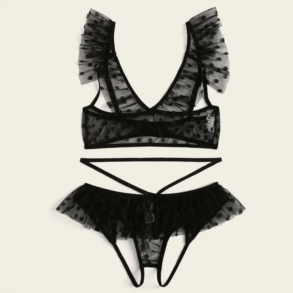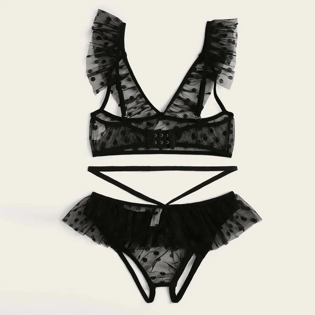Женские пижамы, сексуальное нижнее белье, пижамы для женщин, плюс размер, кружевное нижнее белье, бюстгальтер + стринги, комплект нижнего белья, черная одежда для сна