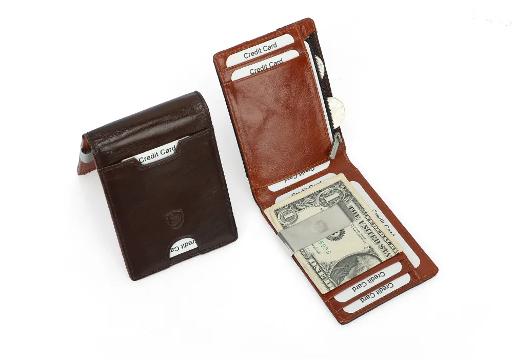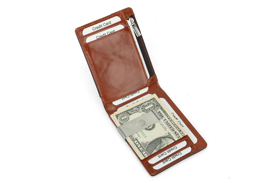 Мужской кошелек из натуральной кожи, держатель для кредитных карт, ультратонкий бумажник для мелочи, портативный складной клатч двойного сложения
