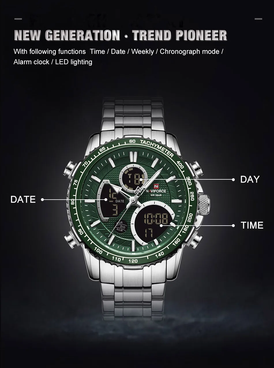 Большой циферблат Мужские часы NAVIFORCE Топ люксовый бренд спортивные часы мужской хронограф кварцевые наручные часы Дата Часы Relogio Masculino