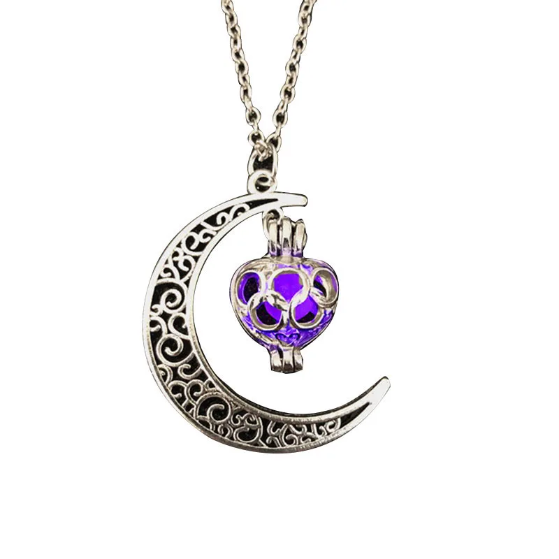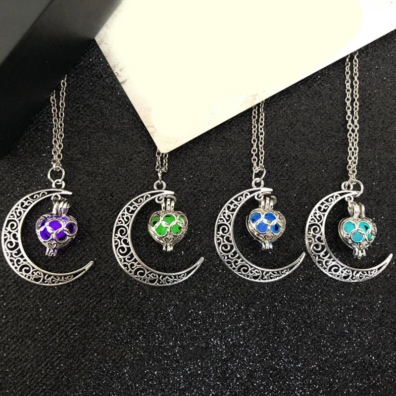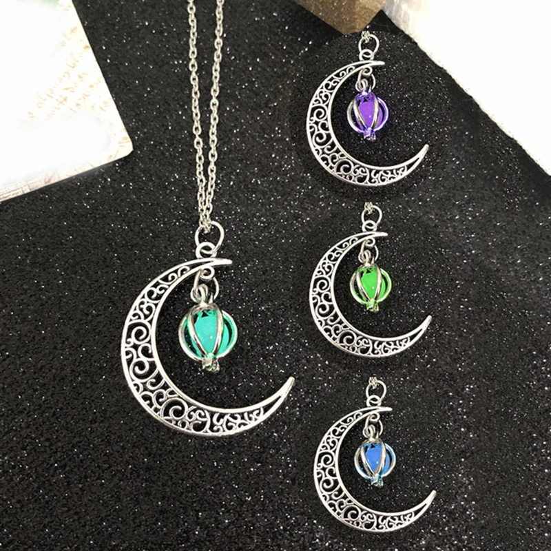 НовинкаСветящаяся лунаОчаровательные ювелирные изделияХэллоуин полый светящийся камень кулонОжерелье