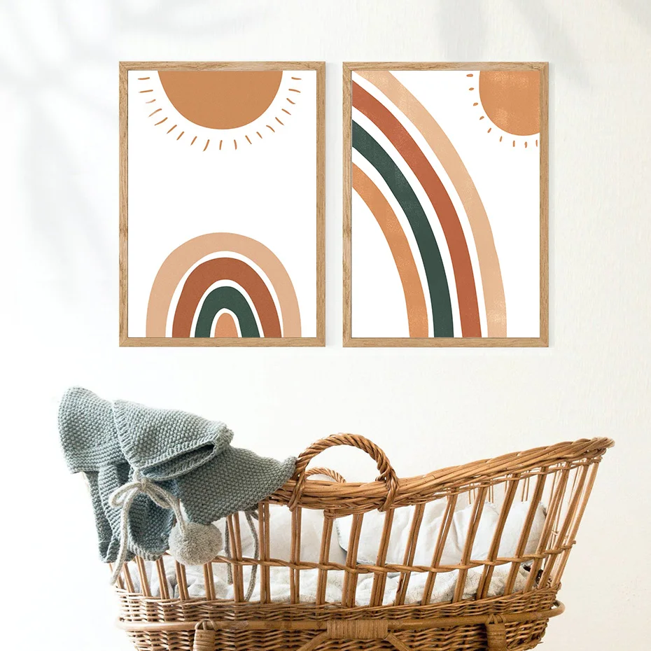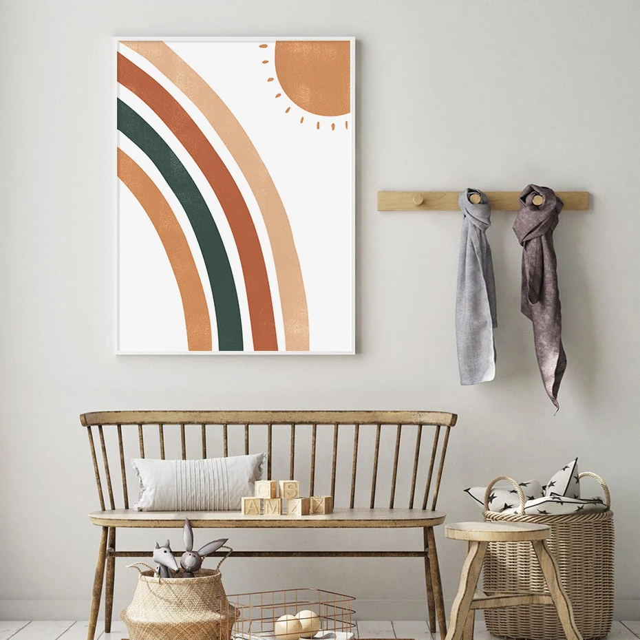 Модная картина в стиле бохо с радужным солнцем для детской комнаты, Декор, холст, картины, настенные художественные плакаты, принты для детской комнаты, украшение для дома