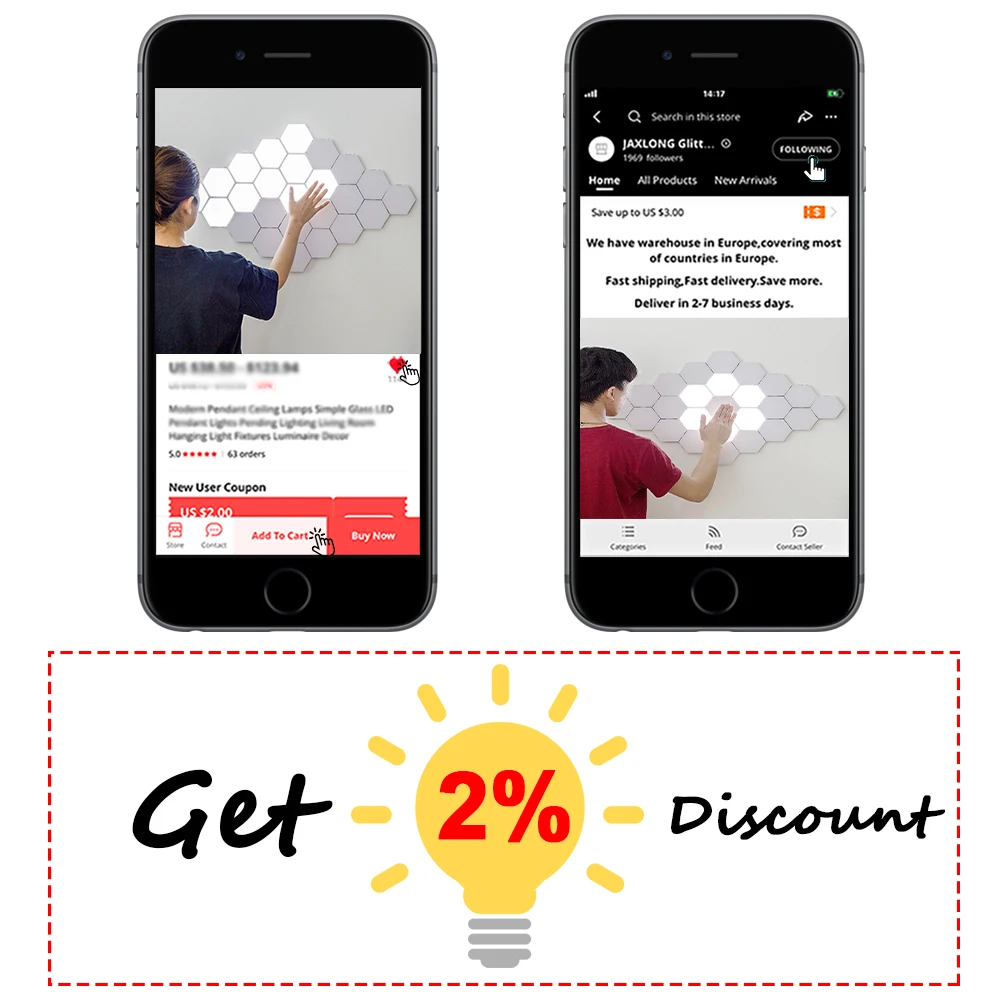 Светодиодный настенный светильник Lumix Touch, Современная Шестигра...