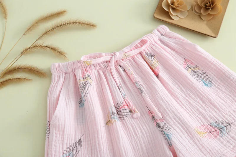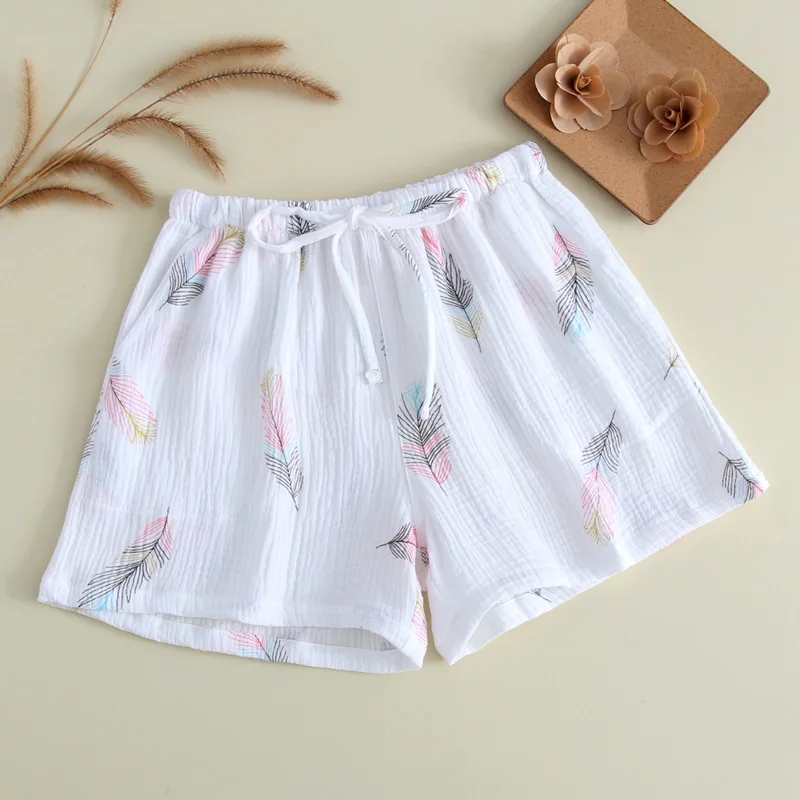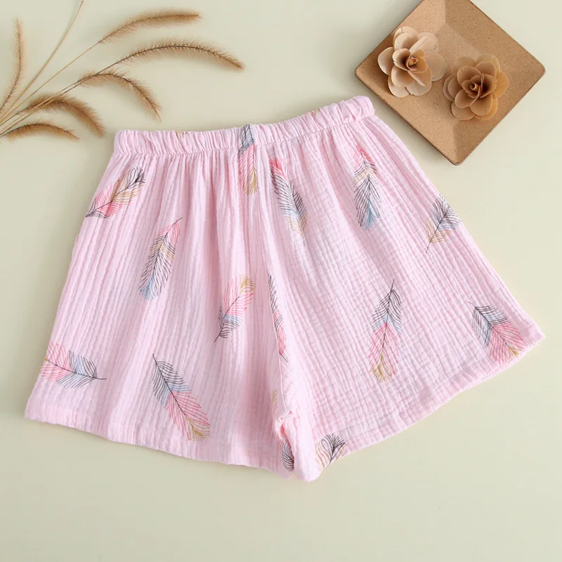 Летние женские шорты для сна хлопковая газовая Пижама штаны для сна повседневные пляжные штаны Домашняя одежда свободного покроя с принтом