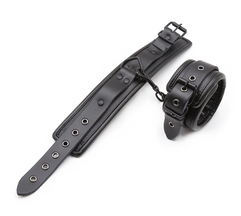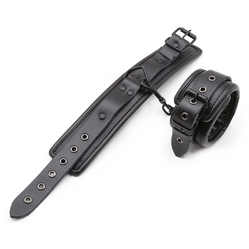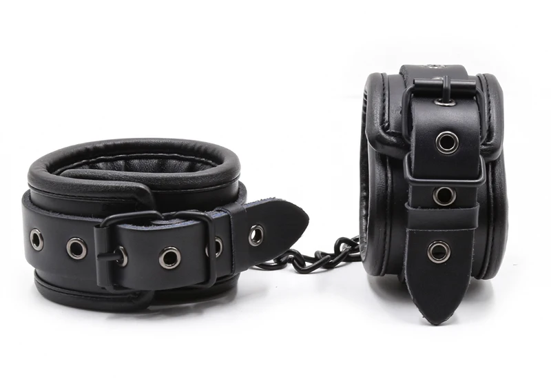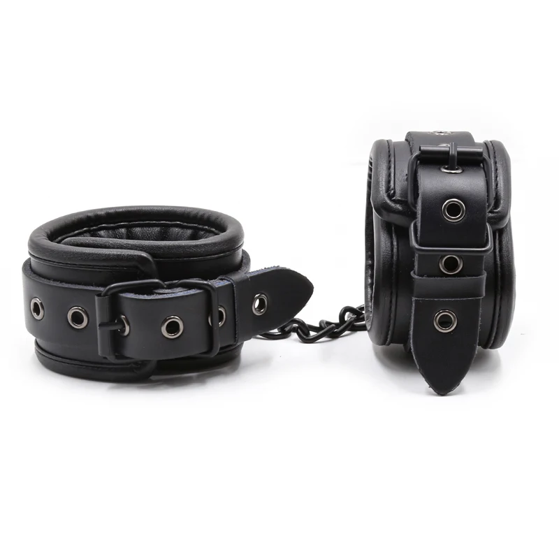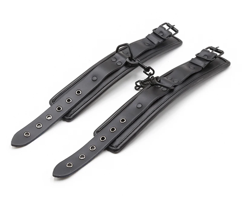 Черные манжеты на лодыжке из натуральной кожи БДСМ связывание ограничения секс-игрушки для пар металлическое отверстие железная цепь ссылка экзотические аксессуары