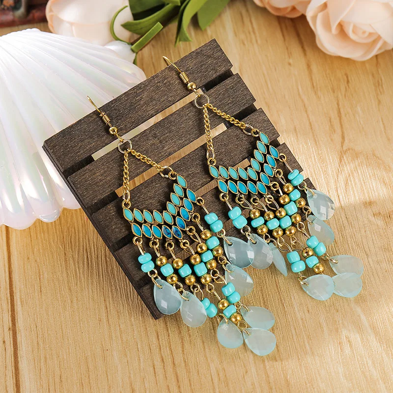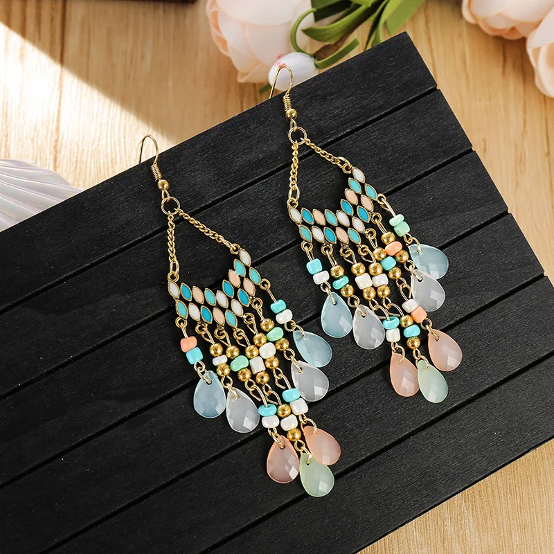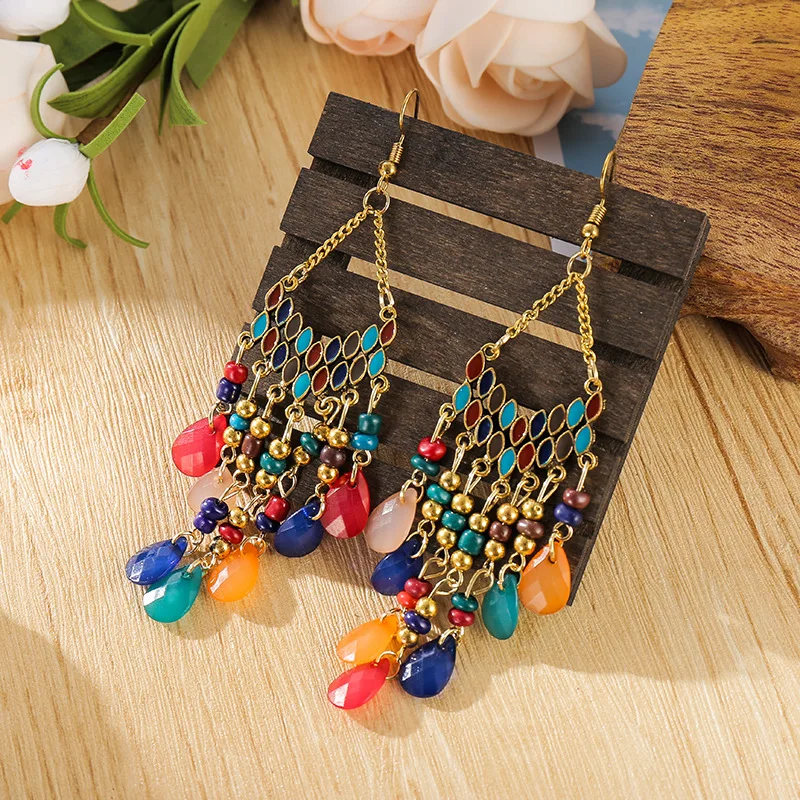 Классические этнические Модные цветные хрустальные бусины, висячие серьги 2020, Длинные свадебные серьги, вешалки