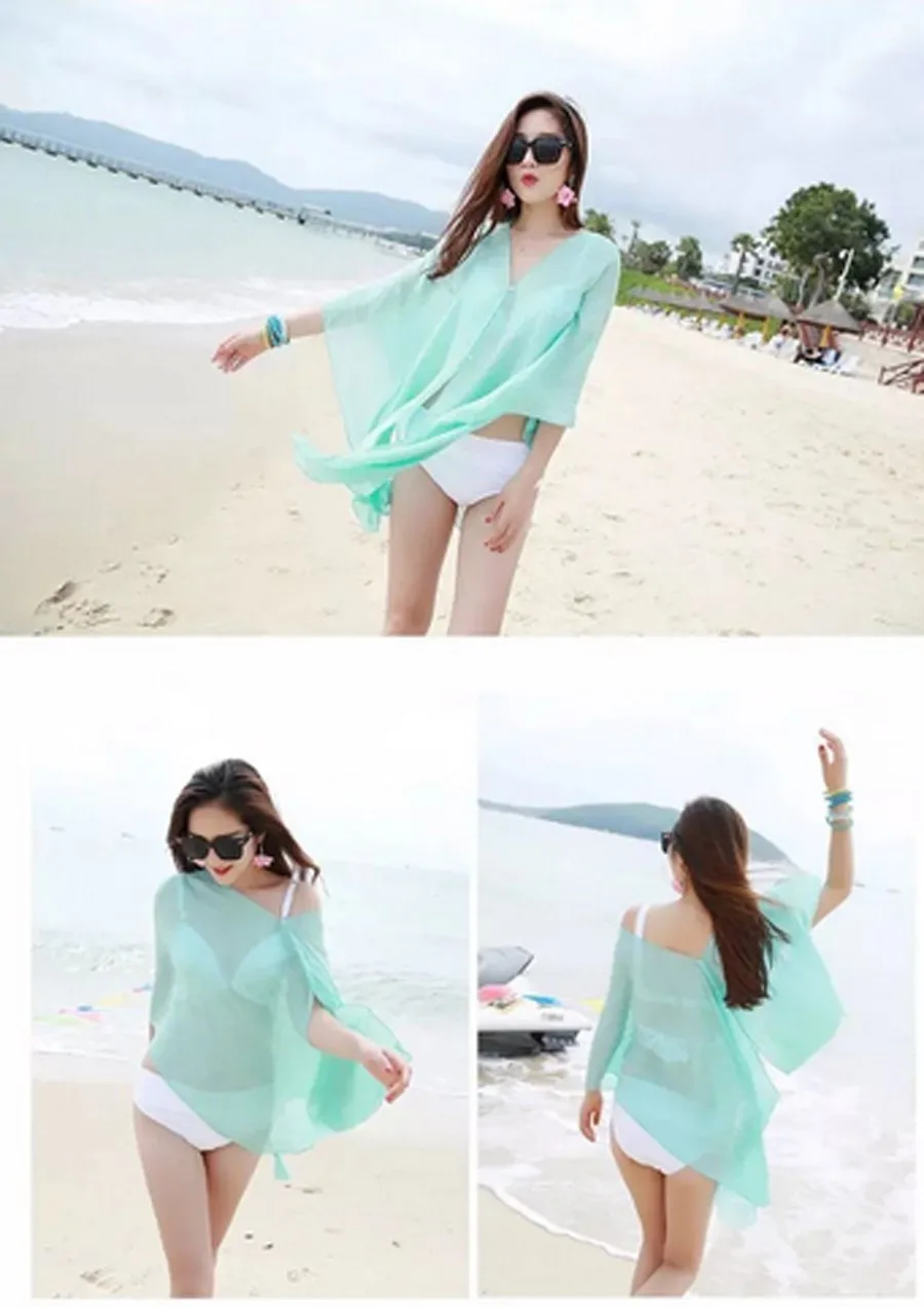 Женская сексуальная шифоновая накидка на бикини, сексуальная летняя шифоновая пляжная однотонная женская одежда для плавания, Пляжное Платье, парео, саронг