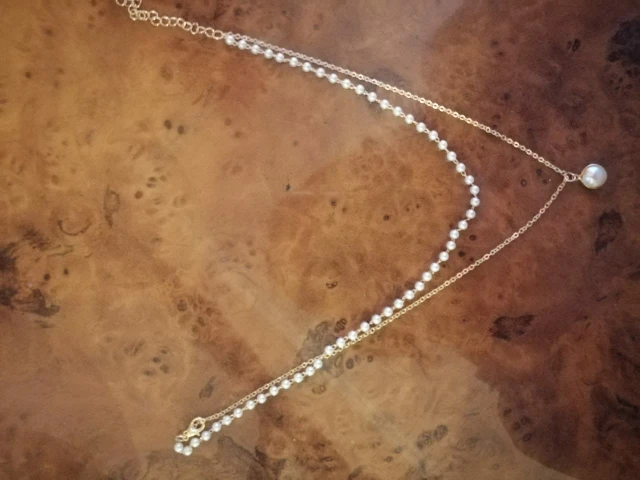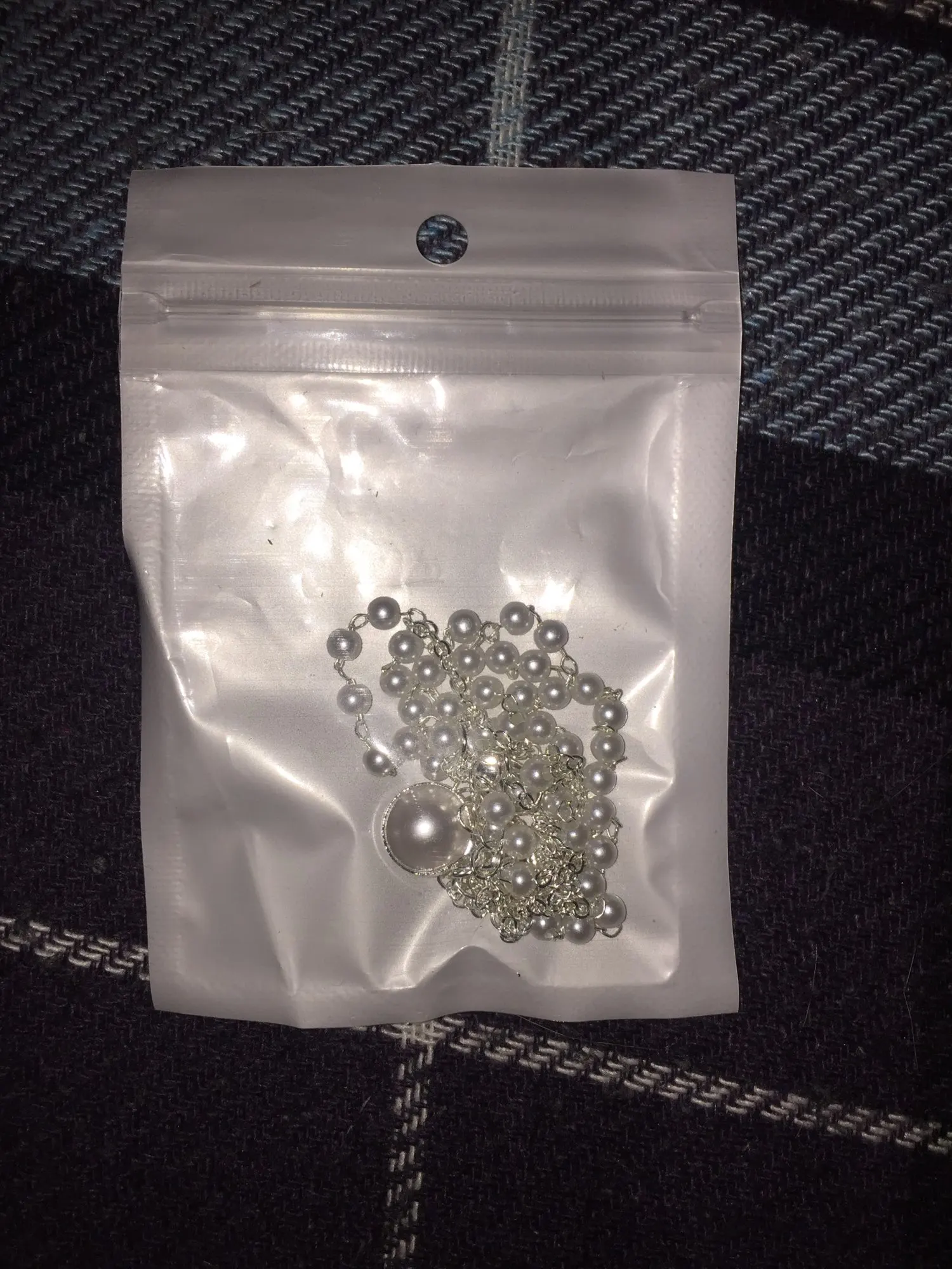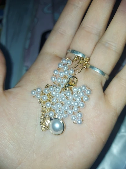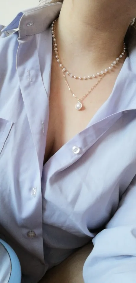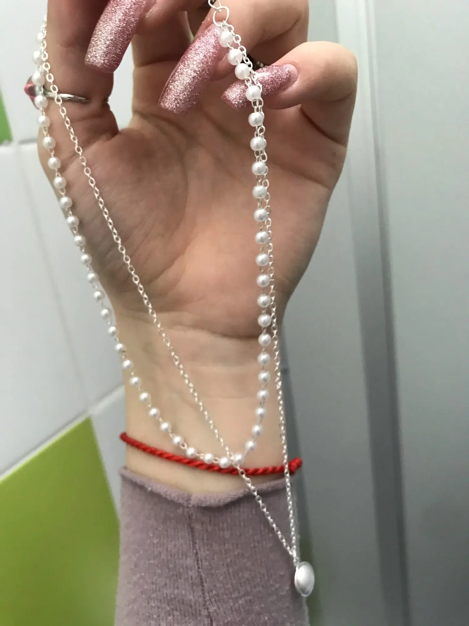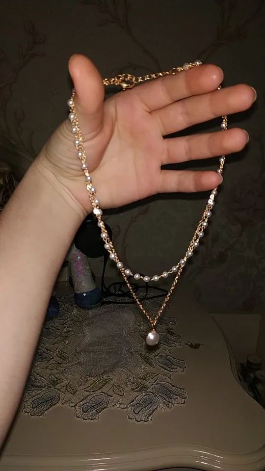 Пришло в маленьком пакетике, обхватить шею жемчужин не хватит, но есть запасные звенья. Товаром довольна. Очень милое и нежное.