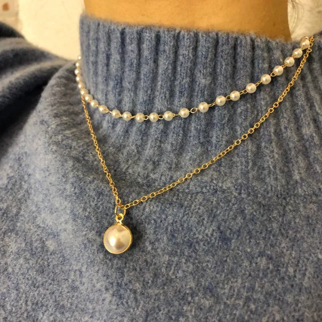SUMENG 2023 Новая Мода Kpop жемчужное ожерелье-чокер Милая двухслойная цепочка кулон для женщин ювелирные изделия подарок для девушки