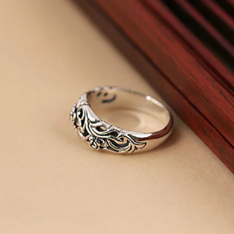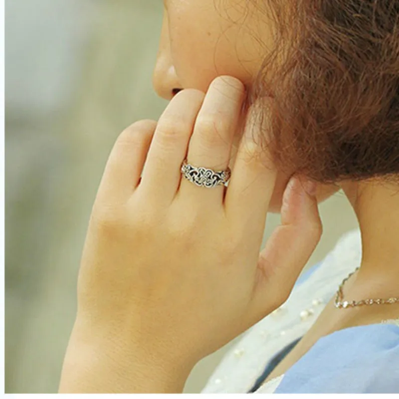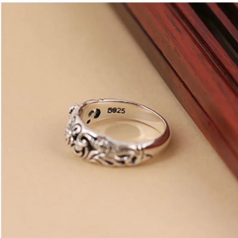 Кольцо женское из тайского серебра, с цветком, винтажное, свадебные подарки, размер 5-10, 925
