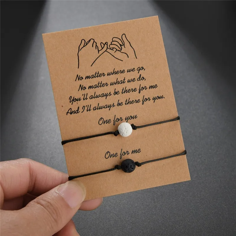 Новый браслет-наручник с подвесками для пар дружбы, 2 шт.компл., браслеты из вулканического камня, браслеты из бисера, для женщин, мужчин, ювелирные изделия с пожеланиями на удачу