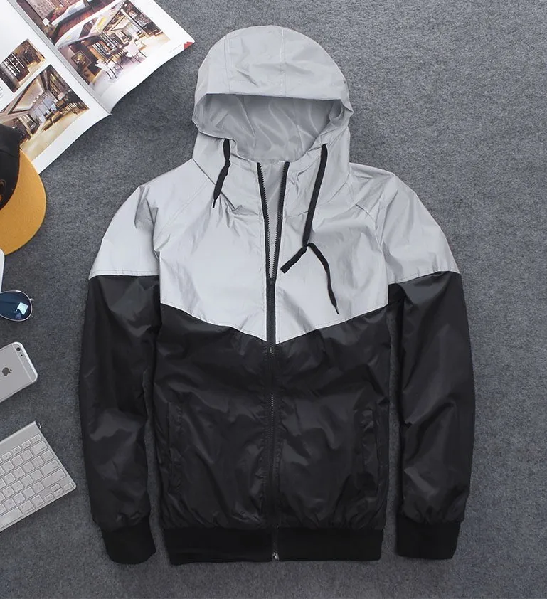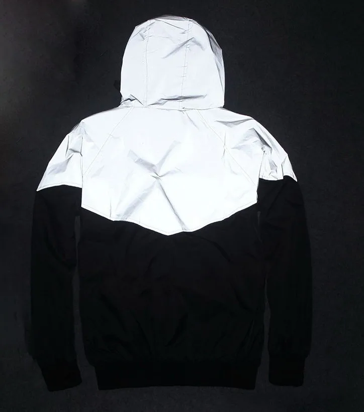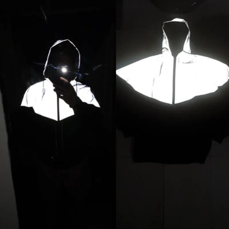 Светоотражающая МужскаяЖенская ветровка в стиле Харадзюку, уличная одежда с капюшоном в стиле хип-хоп, блестящее пальто на молнии, размера плюс 4XL
