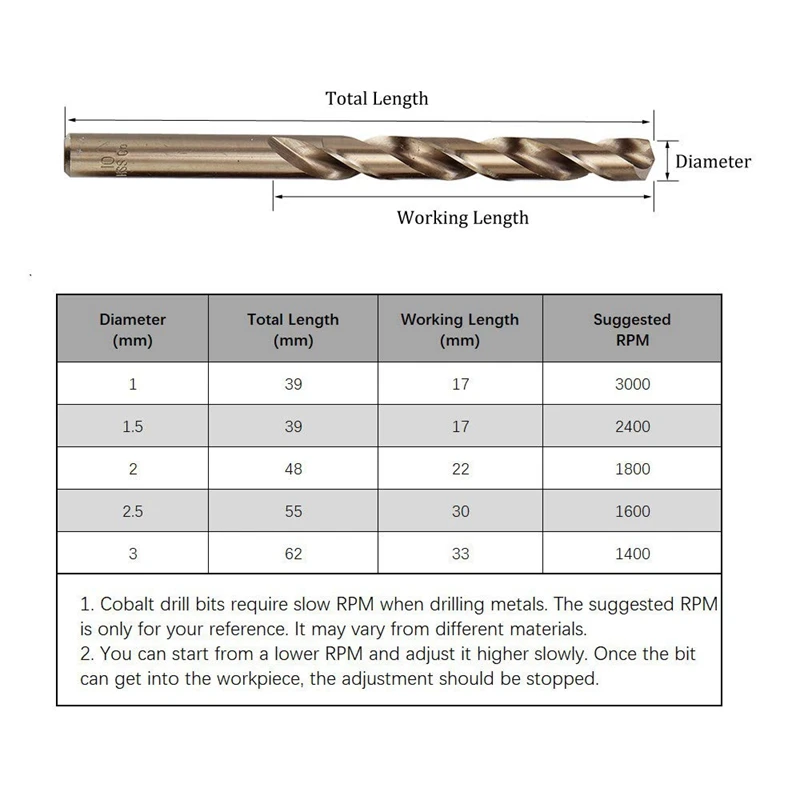 Набор сверл Drillforce M35, набор из 50 кобальтовых насадок 1-3 мм для сверления твердой стали, чугуна и нержавеющей стали