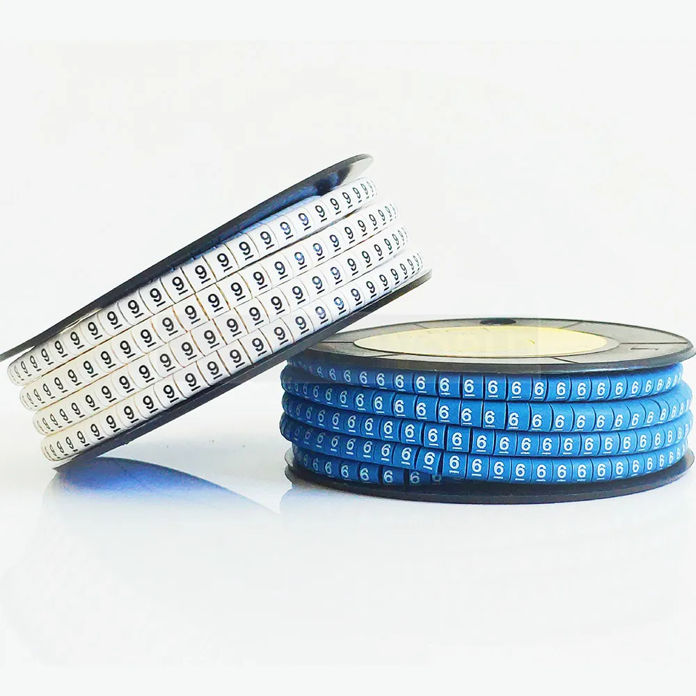 Кабельные маркеры пронумерованные EC-2 1000 шт проволочный маркер номер 0 до 9 оптического кабеля Размер 4sqmm желтый Цветной Кабельные маркеры из ПВХ изоляция маркер