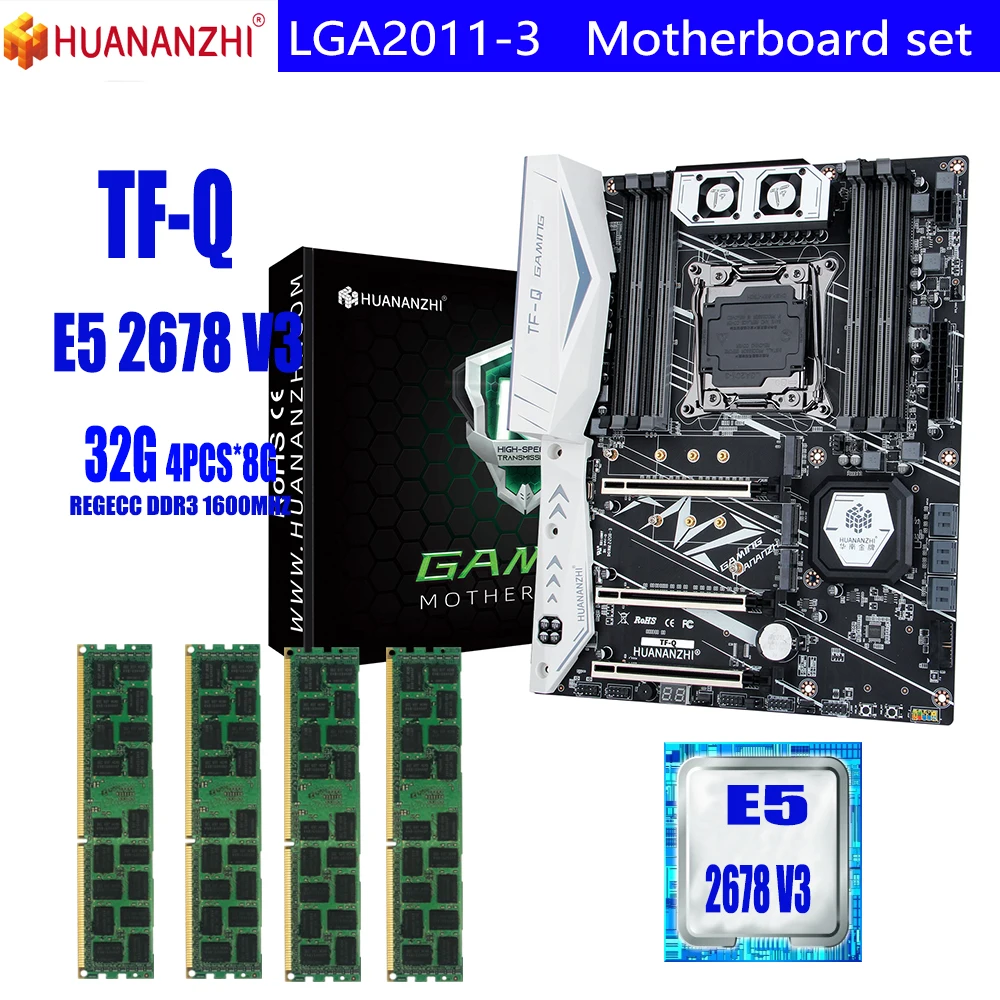 HUANANZHI TF LGA2011-3 материнская плата с Xeon E5 2678 V3 4 шт. x 8 ГБ = 32 Гб 1600 МГц 12800R DDR3 память ECC REG