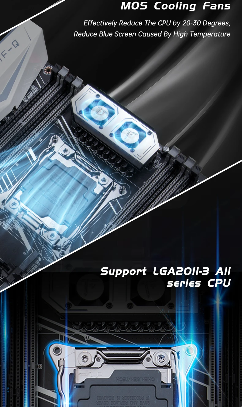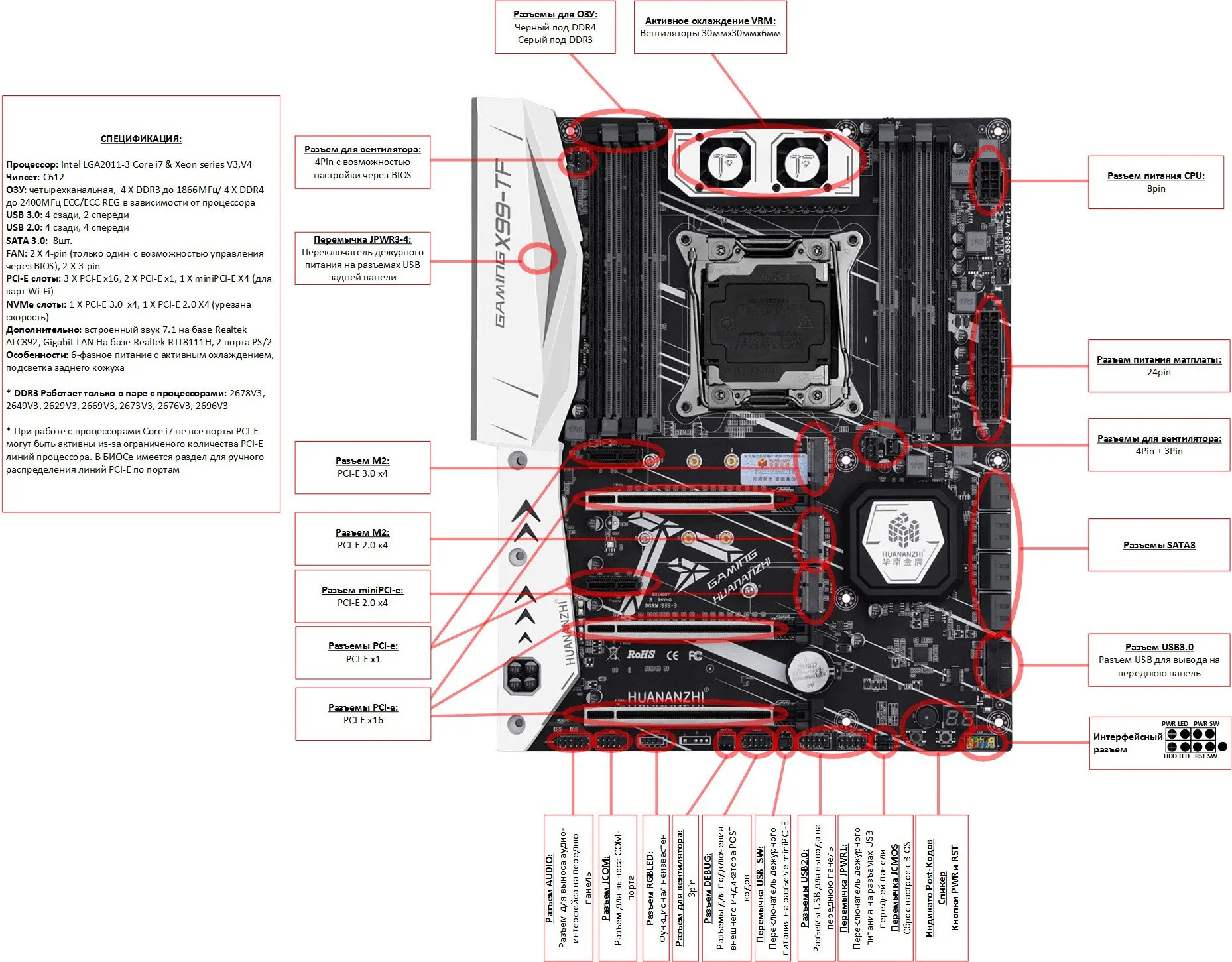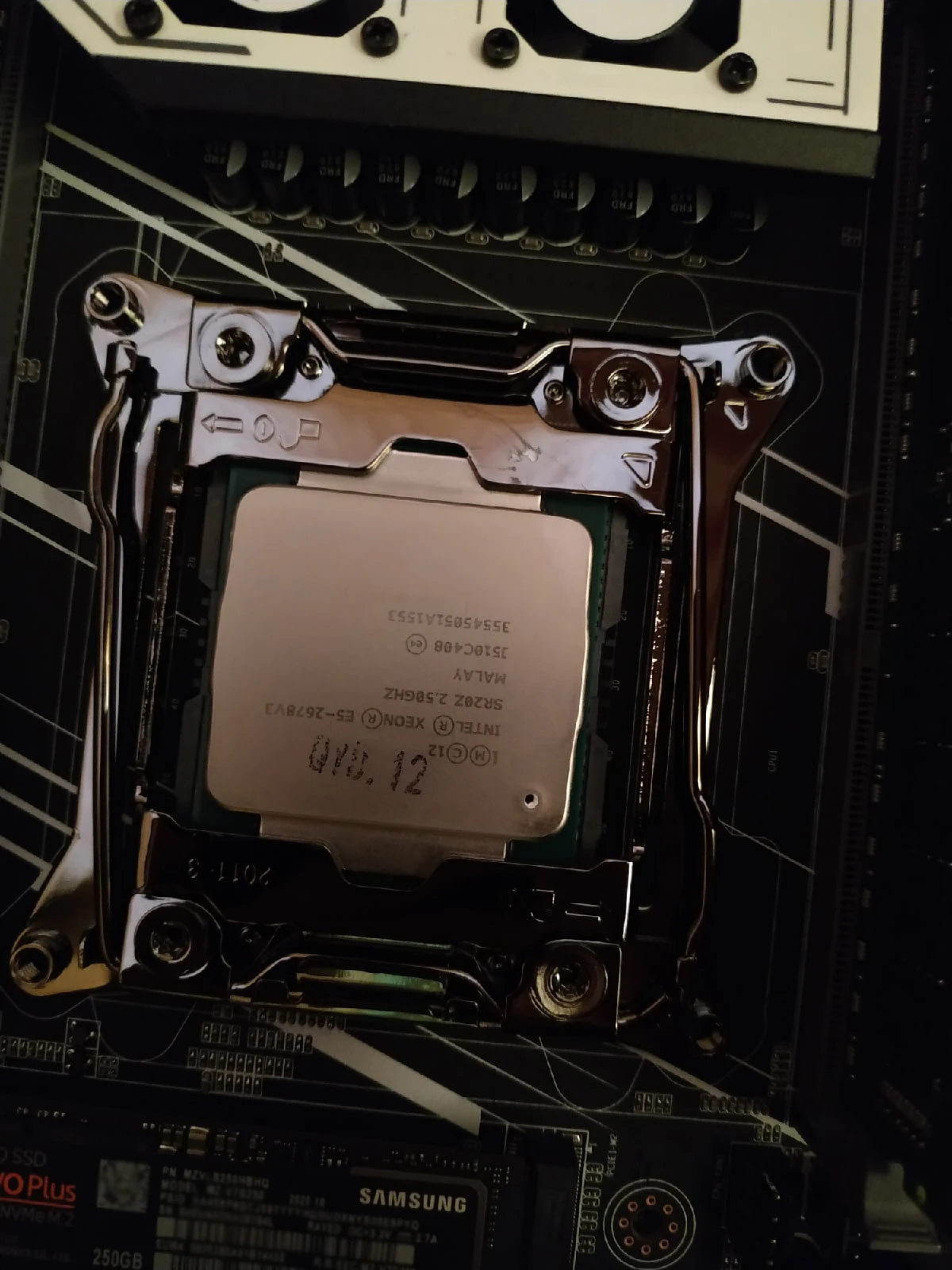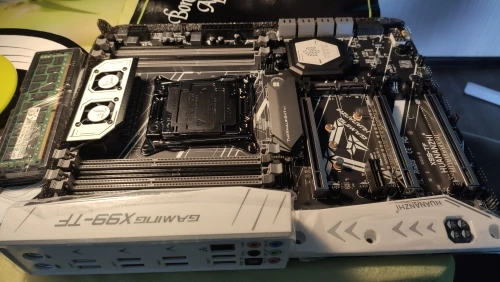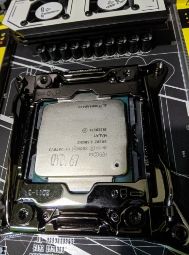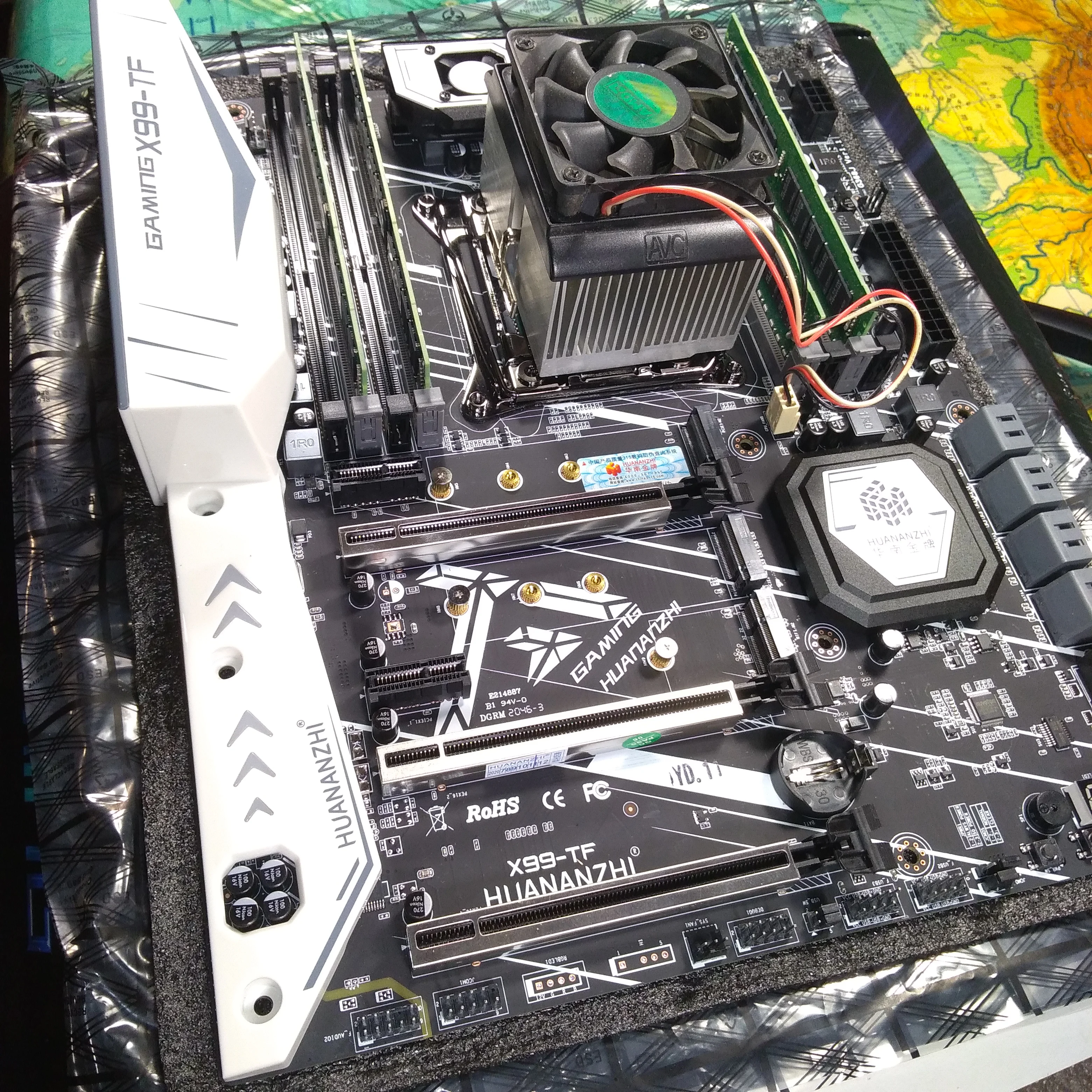 Приехала посылка в предновогодние дни. Думал из-за праздников задержится. Упаковка хорошая, Почта России не смогла ее помять) В комплекте - сама материнская плата, проц 2678 установлен в сокет, память 8х4 в отдельной пупырке. Дополнительно - два SATA кабеля, переходное кольцо под кулер, болты для крепления материнки и переходного кольца, маленький шприц с термопастой, инструкция на китайском, диск с драйверами. Внешне плата очень аккуратно выглядит, пайка качественная, текстолит не гнутый. Полностью сделать тест этого комплекта сейчас нет возможности, так как еще не приехали остальные комплектующие. Накинул маленький кулер, видеокарту - все включилось, в биосе память полностью определилась (ВНИМАНИЕ! С таким кулером использовать НЕЛЬЗЯ! Использовал только для включения на несколько секунд). Когда полностью соберу прогоню на проверку память и сделаю стресс тест в аиде. Если что, дополню отзыв.