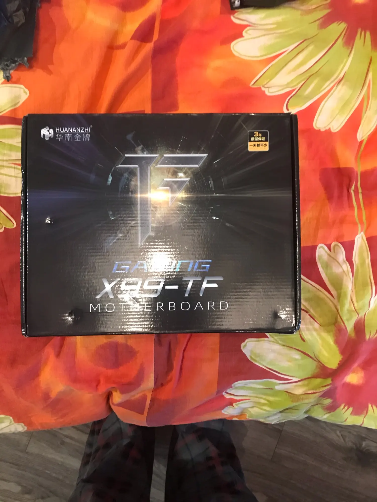 Посылка действительно пришла очень быстро. Фирменная коробка была 4 раза обмотана в пузырчатый целофан, но ее все равно подмяли. Внутри все целое. соответствует описанию. Продавец общается, по моей просьбе положил память от SAMSUNG. В коробке, кроме материнки с уже установленным процессором и обернутых в пупырку 4 плашек DDR3 1600 МГц (соответствует, проверял по номеру на чипе) по 8 Гб, лежали: пластиковый переходник для радиатора на проц. с пакетиком крепежа, два SATA кабеля, термопаста (жаль не понятно какая у нее теплопроводность), диск с драйверами (местами у меня не читался), почти бесполезная инструкция,т.к. полностью на китайском. Собрал, все запустилось без проблем (на индикаторе POST кодов - AA). Джамперы под пластиковым декоративным кожухом на материнке перевел в положение 2-3 потому, что не понравилось присутствие дежурного питания на клаве и мышке(светится мышь и индикаторы на клавиатуре во время сна) вращается на очень низких оборотах вентилятор блока питания.